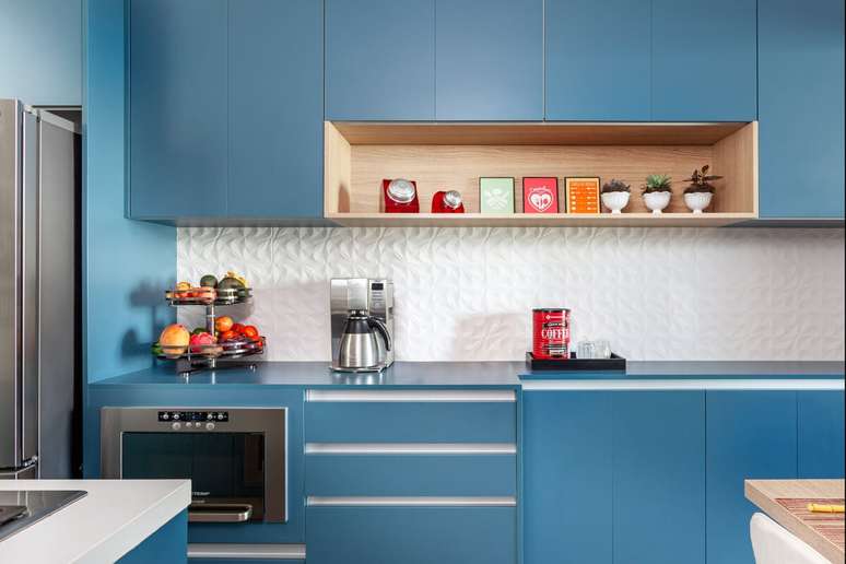 Esse é um dos ambientes que a profissional mais gosta de incorporar os nichos, já que eles cumprem finalidades diversificadas como o uso decorativo e o auxílio nas atividades como fruteira, suporte para eletrodomésticos, temperos e afins.