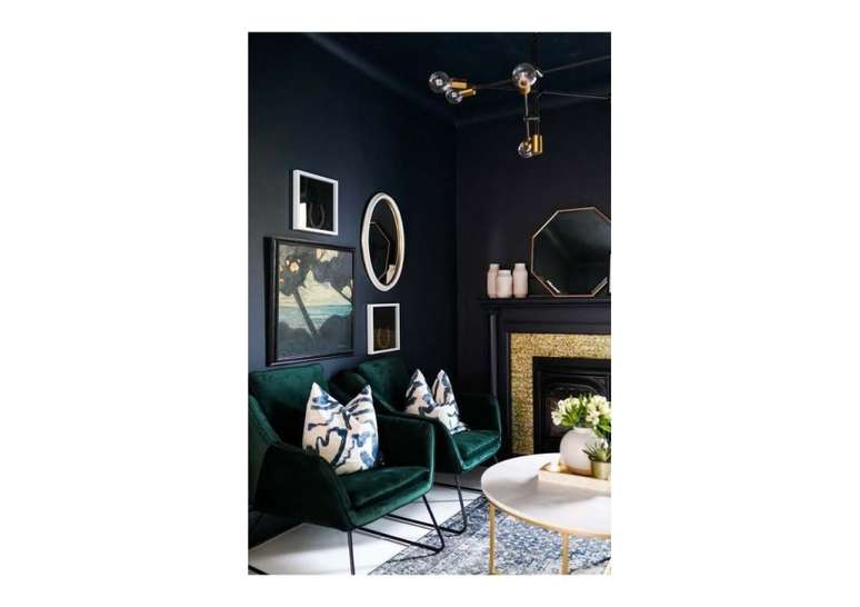 As cores escuras em geral são consideradas duras e normalmente não são usadas em salas de estar. No entanto, elas podem ter efeitos positivos na decoração, como deixar o espaço muito aconchegante e também ser bem prático.
