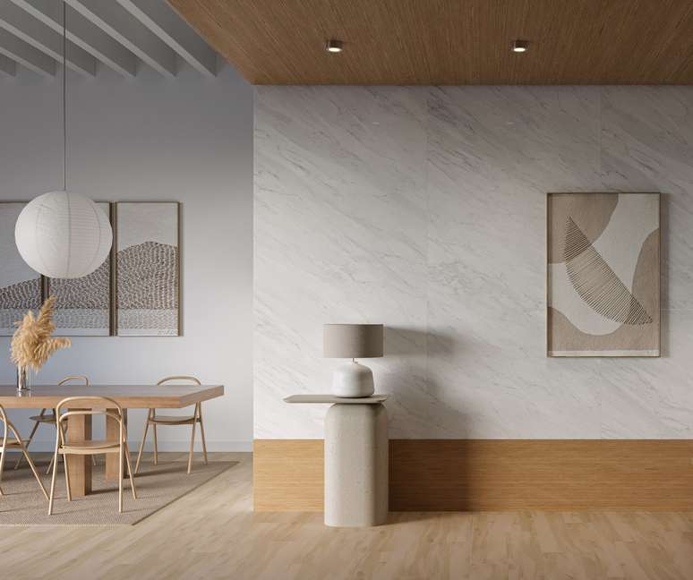 Apostar em porcelanatos que evocam o concreto ou cimento queimado também é uma ótima opção para aqueles que prezam por um décor mais industrial. "Porcelanatos amadeirados, por sua vez, trazem aconchego e, por toda a tecnologia em sua fabricação, podem ser aplicados em cozinhas e banheiros sem preocupação", aponta Christie.