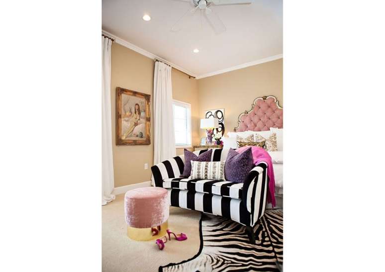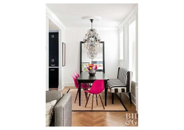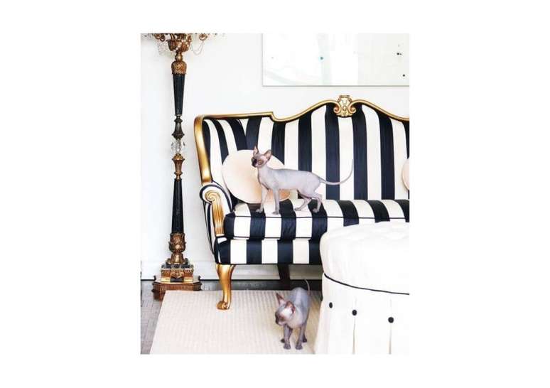 Móveis listrados são uma ideia legal para qualquer espaço, e são mais fáceis de integrar na decoração da sua casa do que uma parede. Tudo o que você precisa fazer é colocar alguns móveis listrados aqui e ali e, se não tiver nenhum, trocar o estofado.
