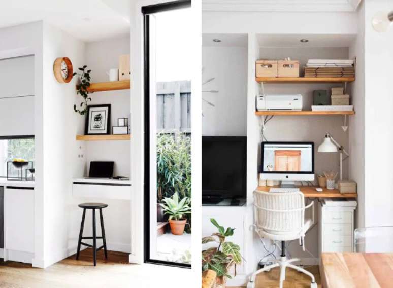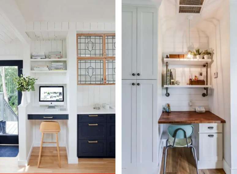 Se você tem um pequeno canto perto da janela, da porta, ou talvez entre os armários da cozinha, você pode optar por um home office embutido.