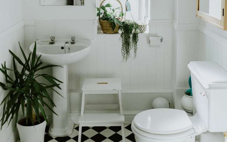 Essa é uma ótima opção para quem ama plantas, pois além de ficarem lindas no banheiro, elas também ajudam a controlar o mau cheiro e purificar o ar. Se quiser, aposte em vasinhos coloridos para trazer um charme a mais para o cômodo.