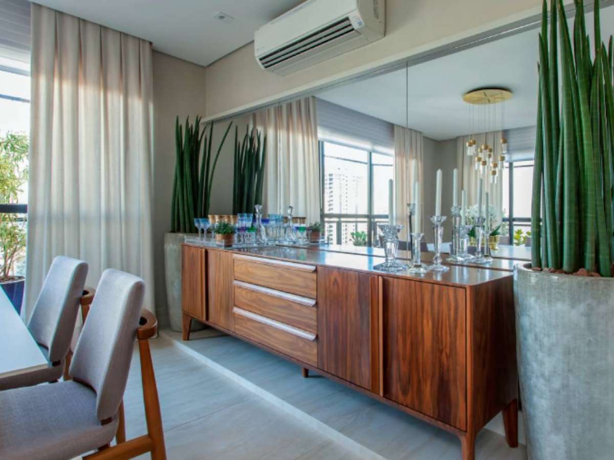 "O móvel precisa combinar com a mesa de jantar, mas não necessariamente precisa ter a mesma cor ou acabamento. A criatividade é uma dádiva e deve ser utilizada. Porém, todo ambiente precisa ser harmonioso para os olhos. Ele pode ser o destaque em uma sala de jantar, mesmo com tons neutros", reforçam a arquiteta e a designer de interiores.