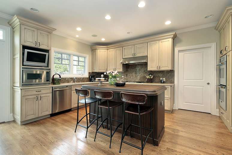 Em se tratando da quantidade ideal, tudo vai depender da largura do tampo, da bancada. É preciso tomar cuidado para não criar um ambiente desconfortável, seja pela falta de espaço entre os móveis, seja pela ergonomia em relação ao balcão em si.