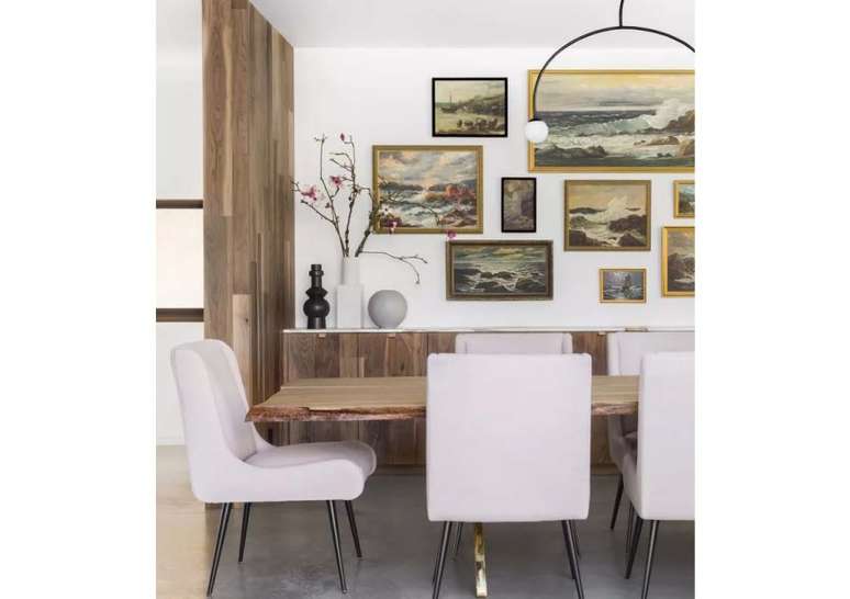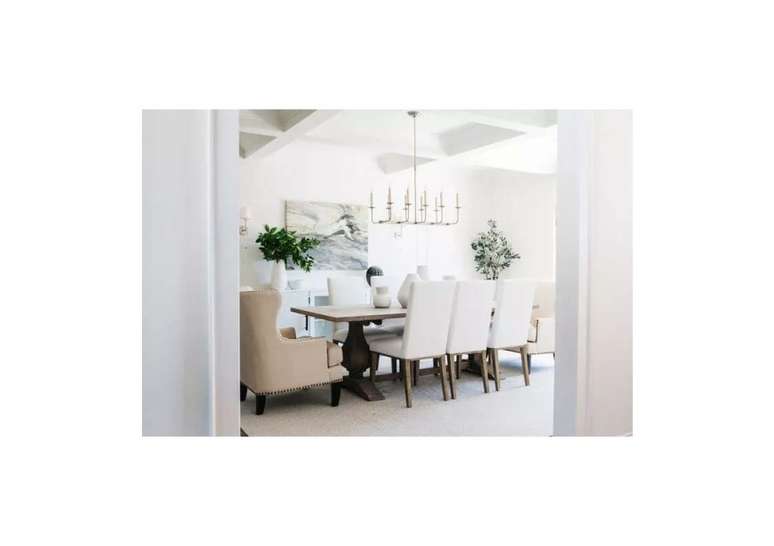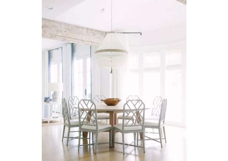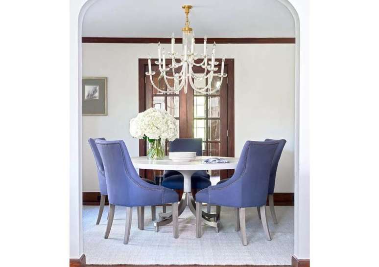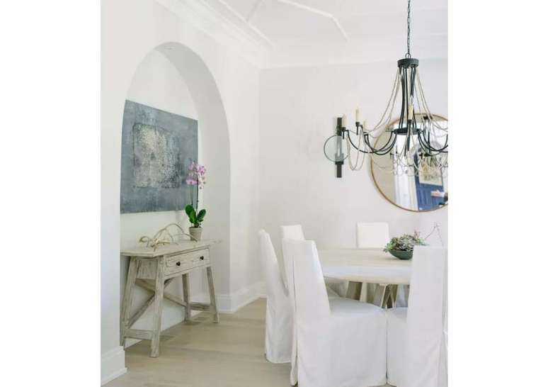 De acordo com Liz Walton, designer de interiores e CEO da Liz Walton Home, "Os tons alvos transformam qualquer espaço em uma lousa em branco, e a sala de jantar não é exceção. Adoro usar a cor, porque permite que meus clientes troquem acessórios, obras de arte e toalhas de mesa sazonalmente."