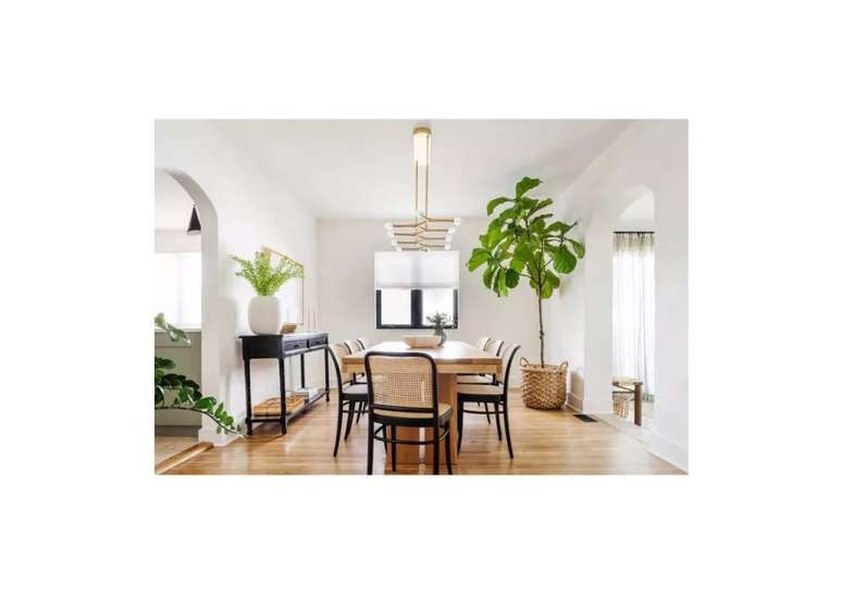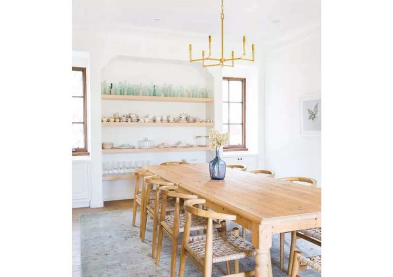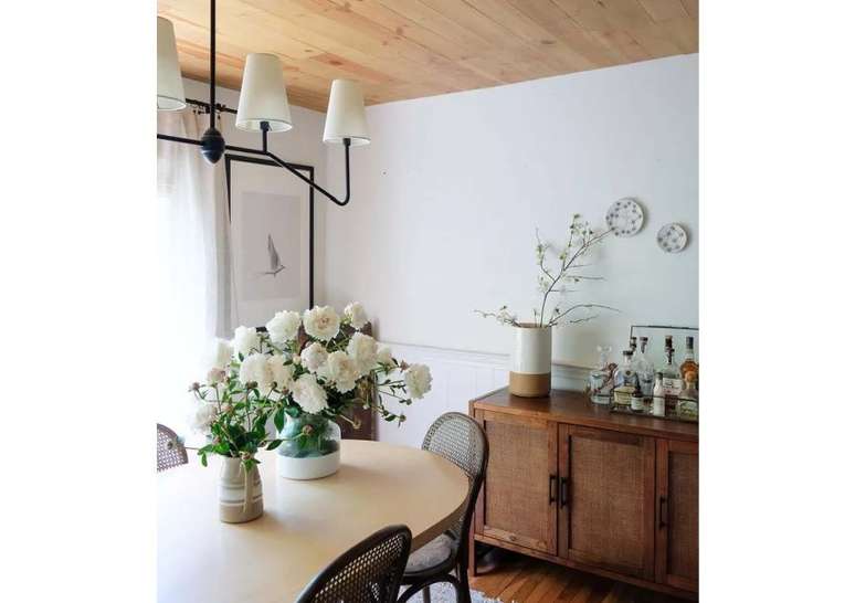 Com a tinta branca certa, os espaços ficam mais claros e permitem que você brinque com acessórios e decoração em qualquer cor ou estilo que desejar. É o tipo de tom que você sabe que não vai enjoar e que parece limpo e simples em qualquer cômodo da casa, incluindo a sala de jantar.