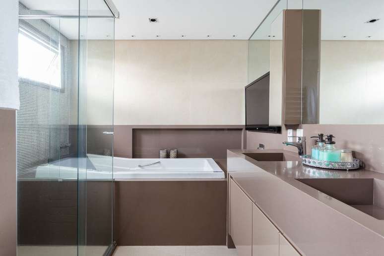 Elas também outorgam ao passado o conceito de que o banheiro precisa ser totalmente revestido: o caminho é analisar a função de cada parede antes de decidir os acabamentos. "Obviamente, a aplicação do porcelanato do piso ao teto torna-se uma proteção para o vapor do banho. Mas podemos considerá-lo apenas no interior do box e, do lado de fora, considerar uma tinta de excelente durabilidade, além de uma constante ventilação", ressaltam Danielle Dantas e Paula Passos.
