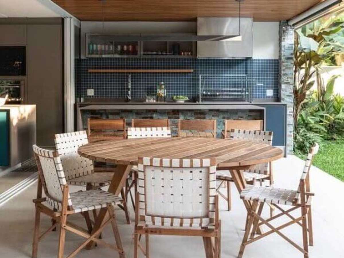 26. Modelos de área gourmet com churrasqueira decorada com mesa redonda – Foto: Arkpad