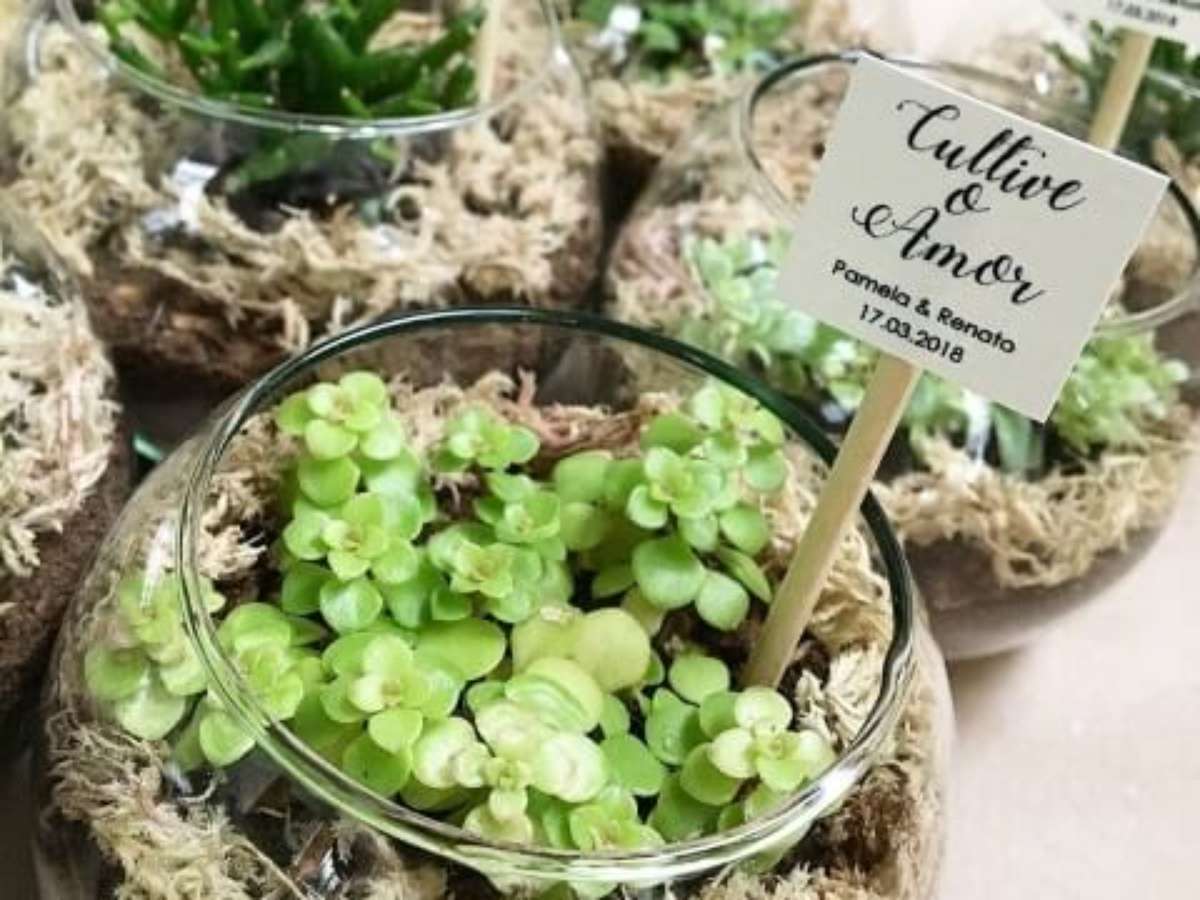 74. Vasos de suculentas como lembrancinhas de casamento. Foto de Pinterest