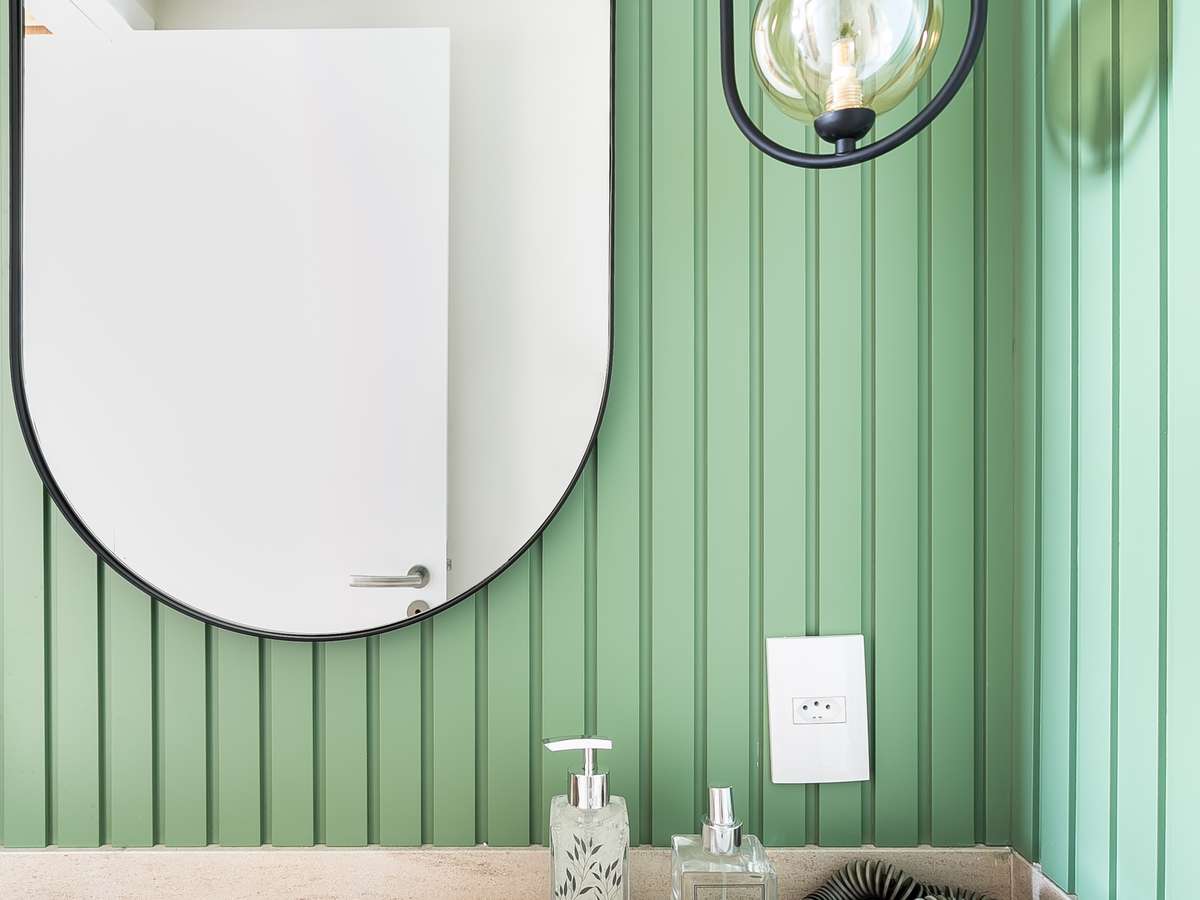 Luminárias laterais, penduradas ou acima do espelho são algumas das opções para trazer mais brilho e cor a esse ambiente