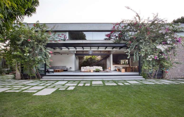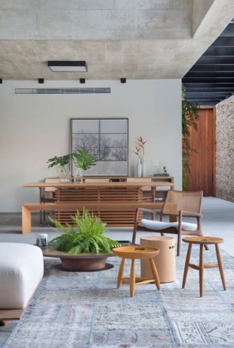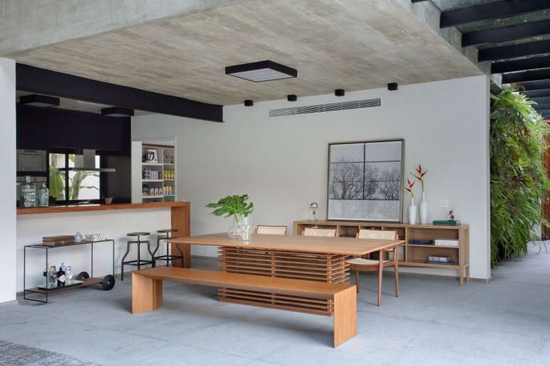 Com ambientes integrados, o projeto assinado por Sabugosa Arquitetura possui completa integração entre o interno e externo