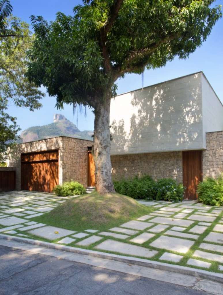 A implantação da casa foi feita de forma que não precisasse retirar nenhuma árvore do terreno. E o layout foi baseado nas condições climáticas e no entorno: a construção está virada para o sol da manhã e para a vista da Pedra da Gávea.