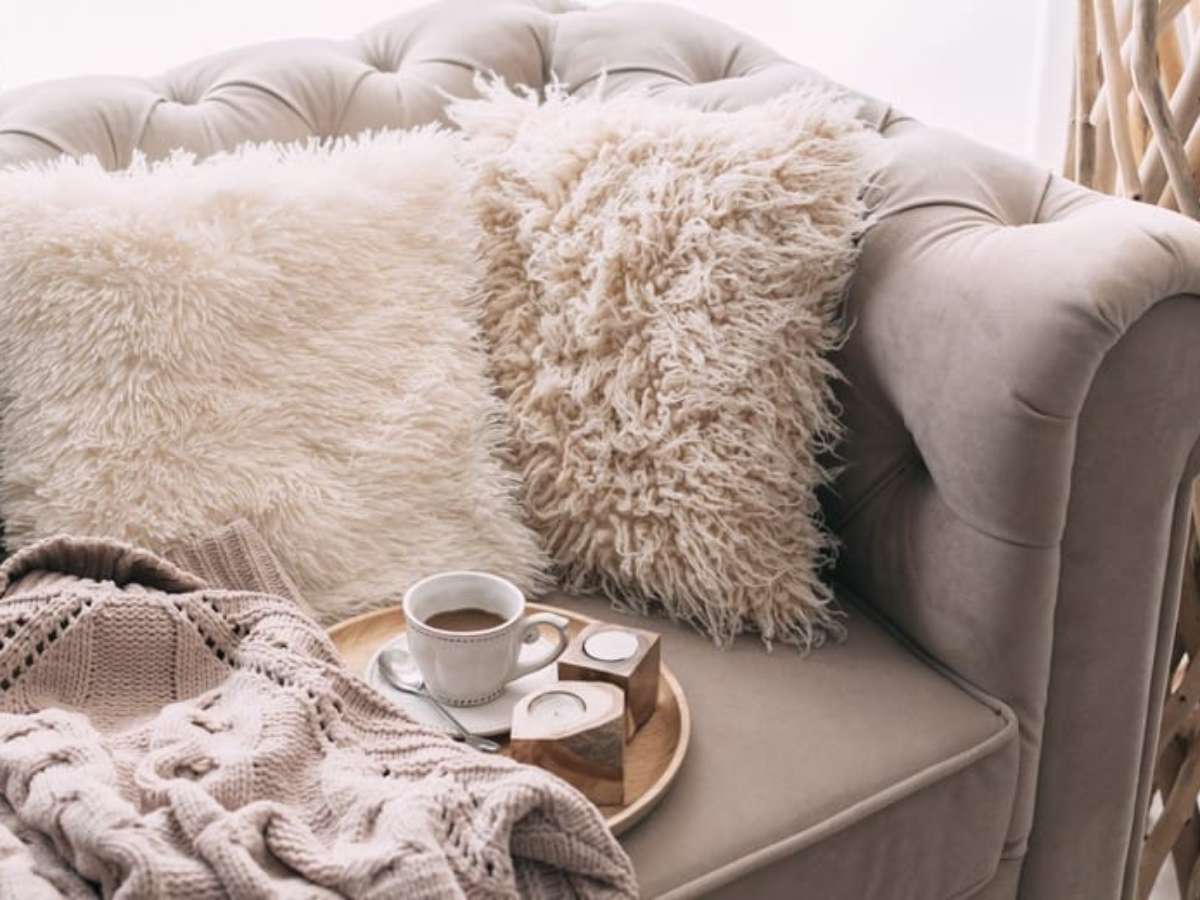 Um passo simples é apostar em uma manta para cobrir o sofá. Isso fará com que ocorra uma troca de calor entre o seu corpo e o tecido que tem alta capacidade de reter a temperatura mais quente. Para os dias frios, você pode, também, pegar um outro edredom para se cobrir enquanto estiver sentada no móvel.