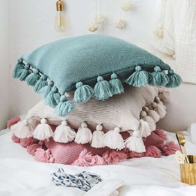 Caso você goste de uma decoração mais suave, use uma almofadas de tricô feito a mão em tons neutros e claros, como bege, cinza e branco. Já as decorações mais modernas podem ter almofadas vibrantes e coloridas: vermelho, amarelo, azul, laranja… Cores que se destacam.