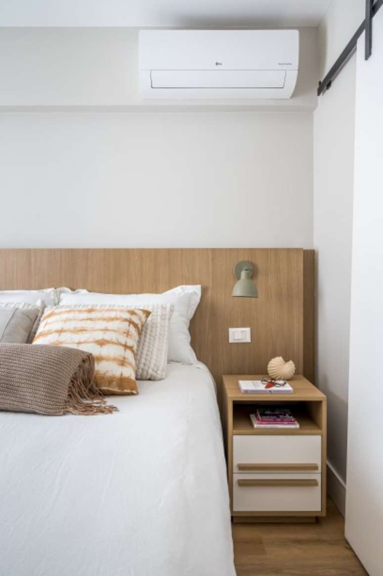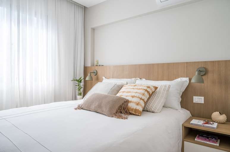 "No quarto de Luana optamos por uma paleta de cores mais neutra e relaxante, com uma cama ampla e confortável para ser um refúgio tranquilo em meio à sua agitada rotina de trabalho. O terceiro quarto se tornou o closet-camarim espaçoso o bastante para organizar seus figurinos e roupas", completa a arquiteta.