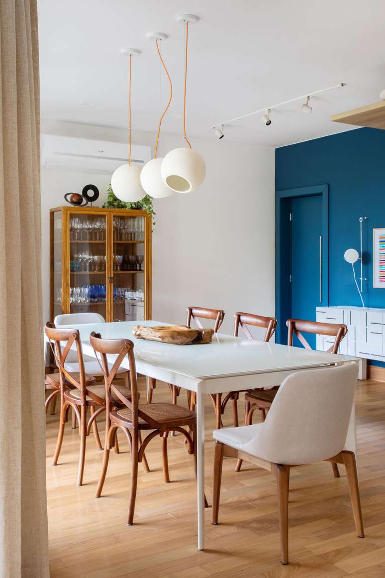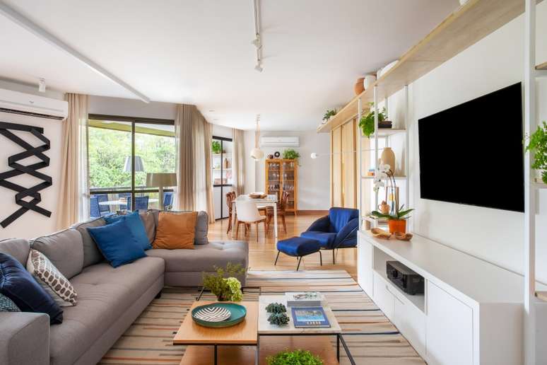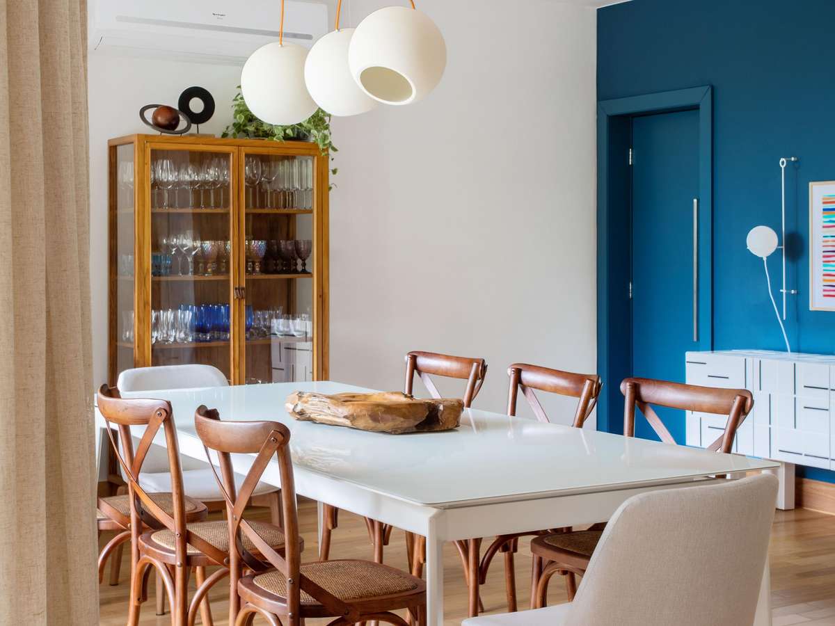 Apê de 230m² tem estilo contemporâneo despojado com toques azuis