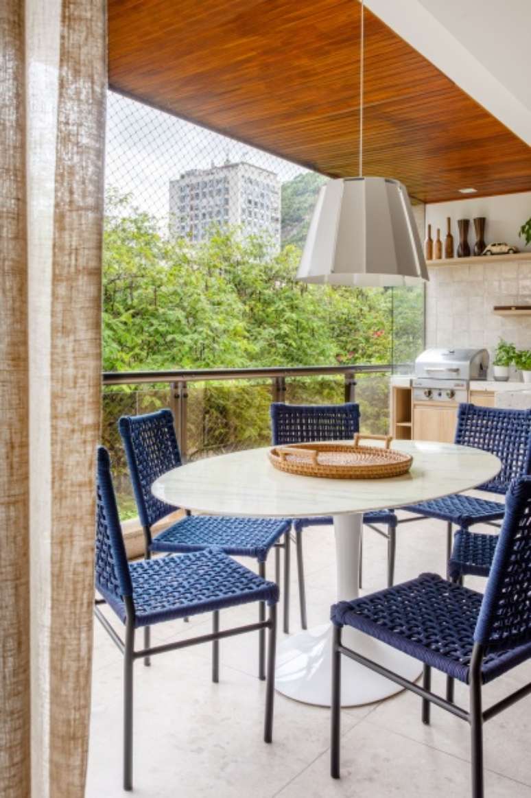 Na decoração, que segue um estilo contemporâneo, mas com personalidade, muitas peças já eram do acervo dos clientes, como o sofá, as quatro poltronas do bar, as cadeiras de jantar da sala e a mesa de refeições da varanda.