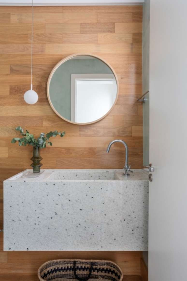 A madeira também se destaca no espaço - ela está presente no piso de tauari natural, no acabamento das marcenarias (sendo algumas estruturas mescladas com ferro) e em alguns móveis.