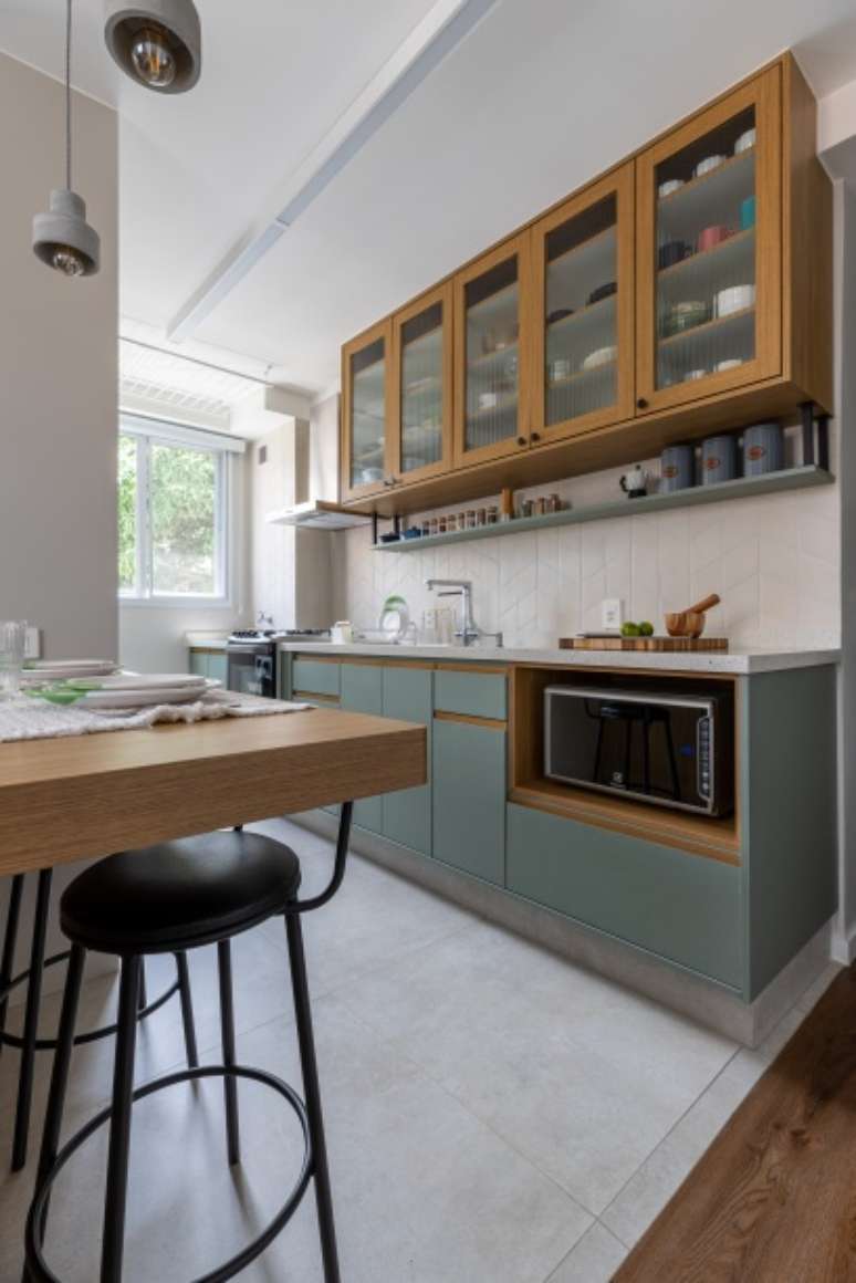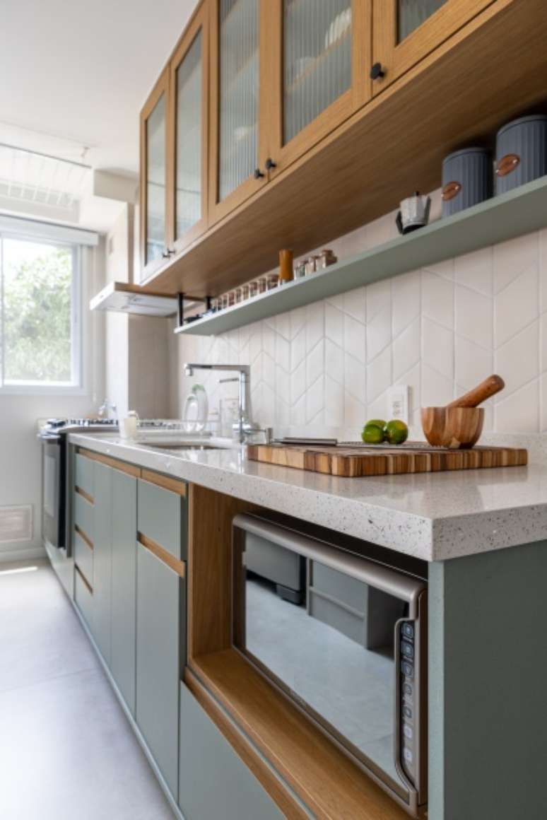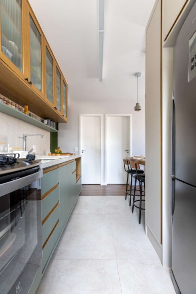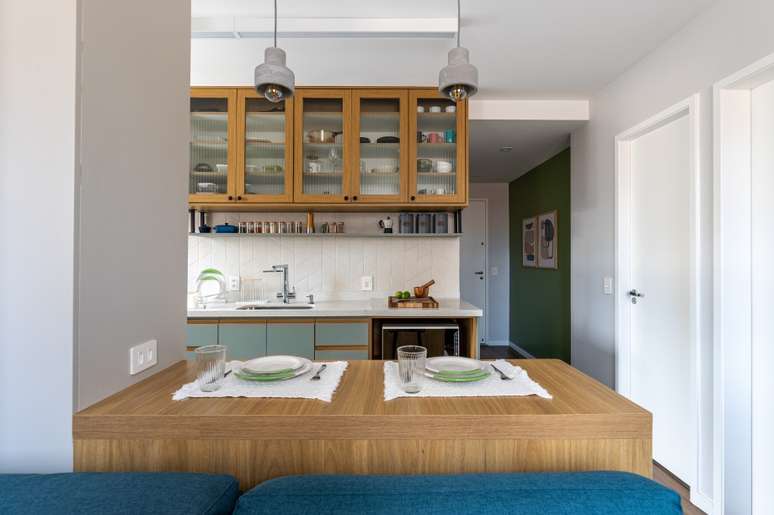 Projeto do escritório CADDA Arquitetura otimizou os espaços, embutiu eletrodomésticos e utilizou cores nas paredes