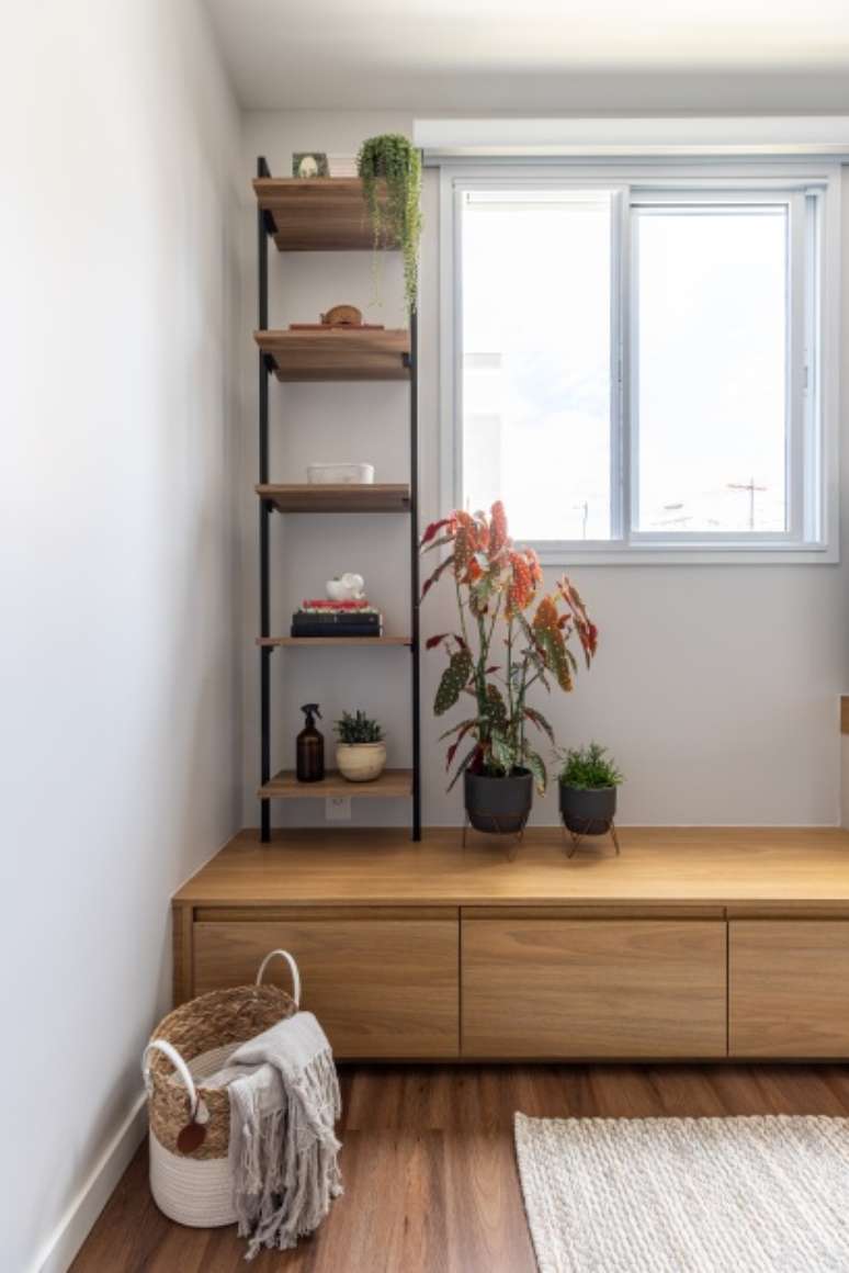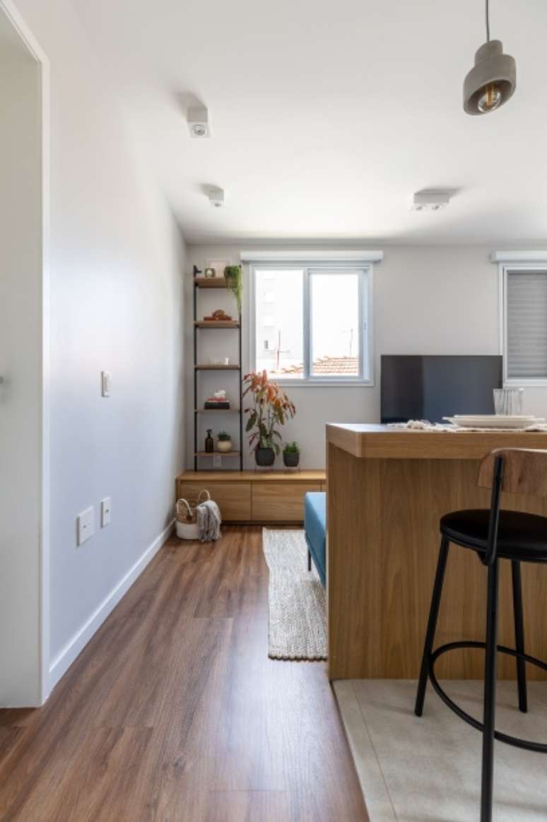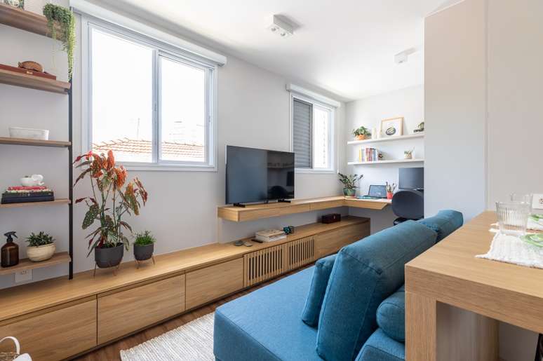 A moradora deste apê de 34 m² é irmã de uma paisagista, logo o projeto assinado pela arquiteta Carolina Haddad, do escritório CADDA Arquitetura, não poderia deixar de ter muitas plantas.
