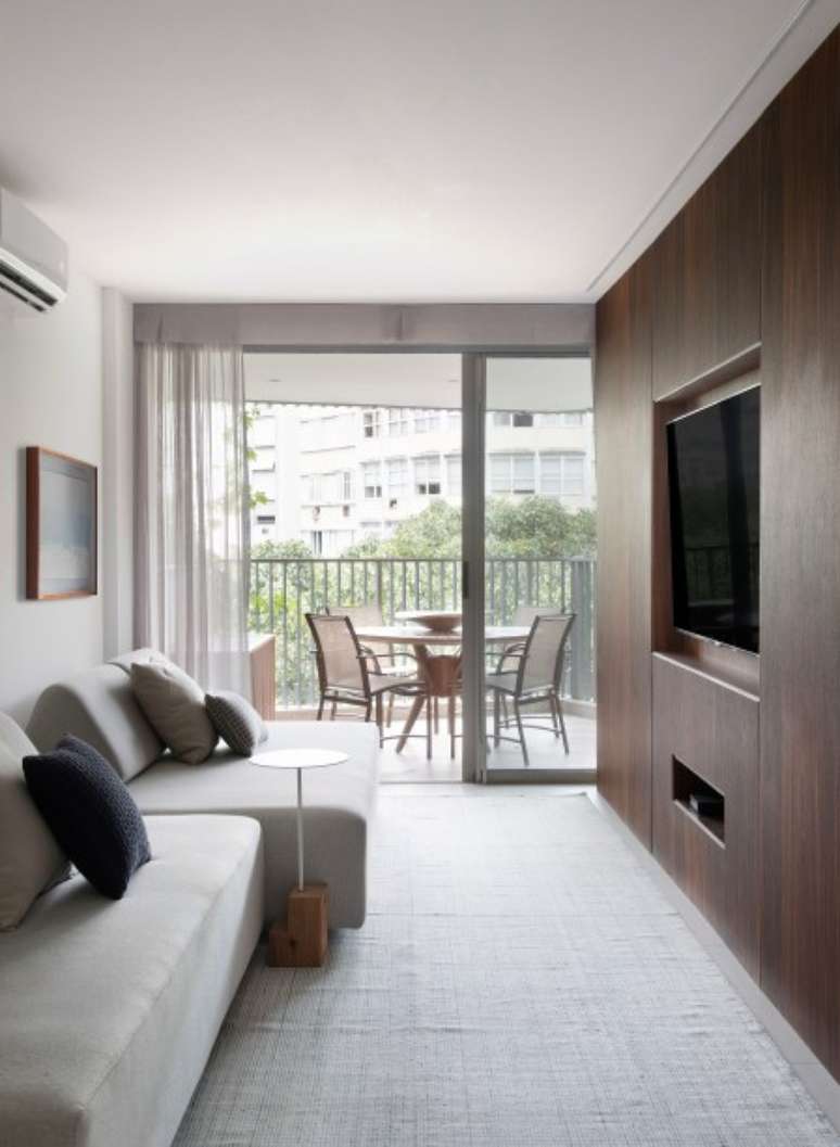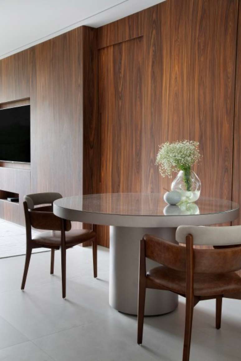 Segundo Roby, no geral, o conceito do projeto buscou criar uma atmosfera contemporânea e, ao mesmo tempo, minimalista. "Nos projetos cariocas, costumamos usar madeiras claras, mas, neste caso, optamos pelo pau-ferro, com a intenção de acrescentar personalidade e sofisticação à decoração, já que esta madeira é escura, com veios bem marcados", justifica.