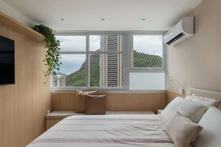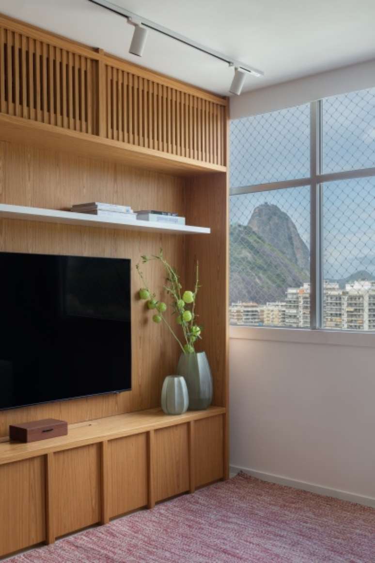 "Um dos pontos fortes do apartamento é a vista do Pão-de-Açúcar e da Praia de Botafogo, enquadradas tanto pela janela da sala como dos dois quartos. Inclusive, modifiquei a posição de um dos quartos em função da vista", revela ele.