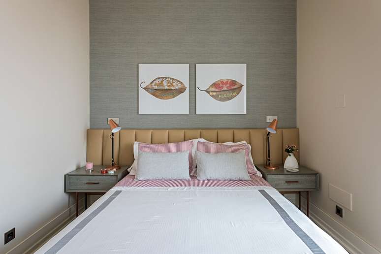 Nos quartos, que não eram muito grandes, tudo é muito aconchegante com diferentes padronagens de papéis de parede - sempre uma textura a mais para o ambiente -, e soluções como a cabeceira de ponta a ponta no quarto da filha e a escrivaninha ao lado da cama, na suíte da mãe.