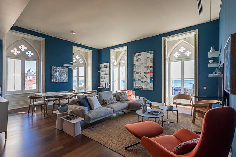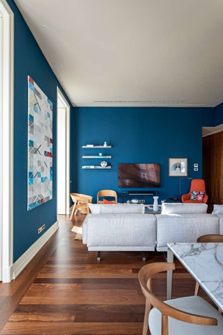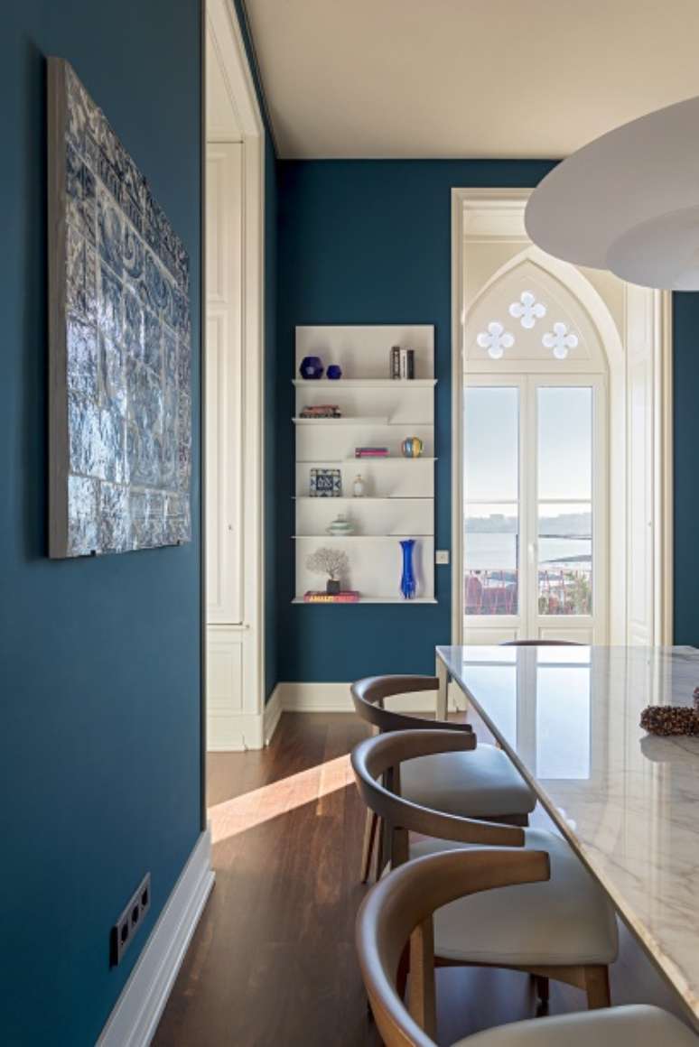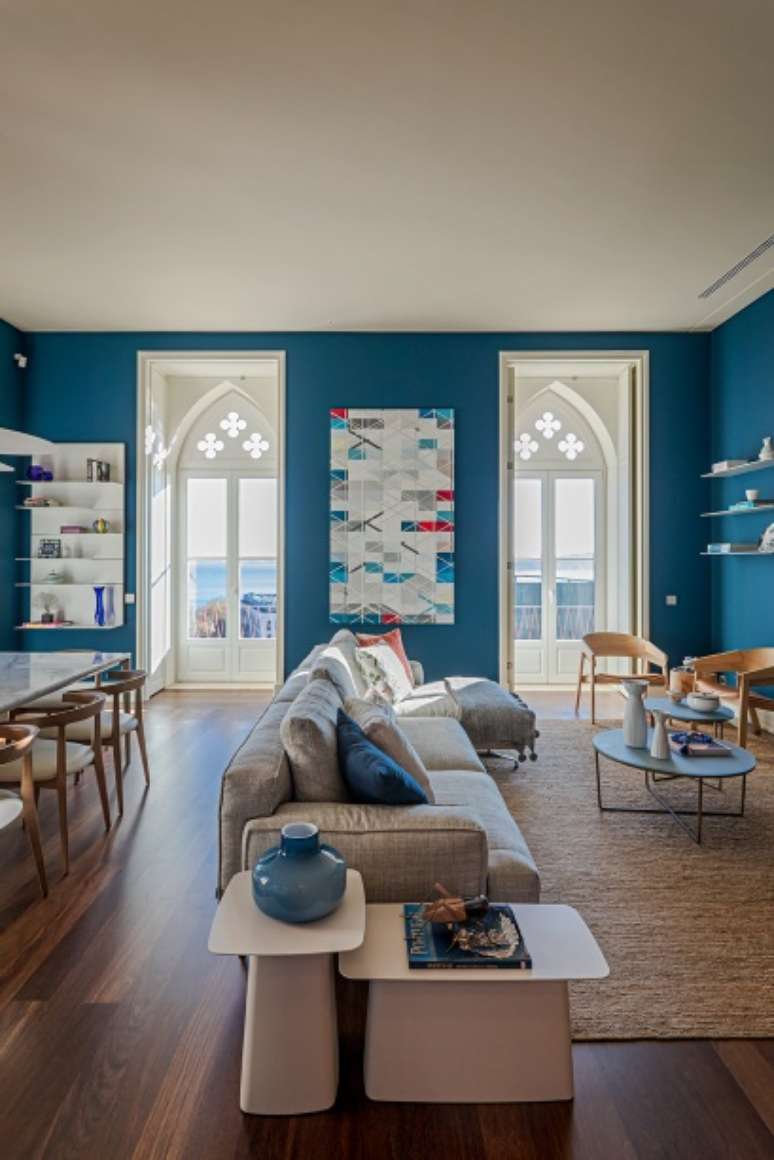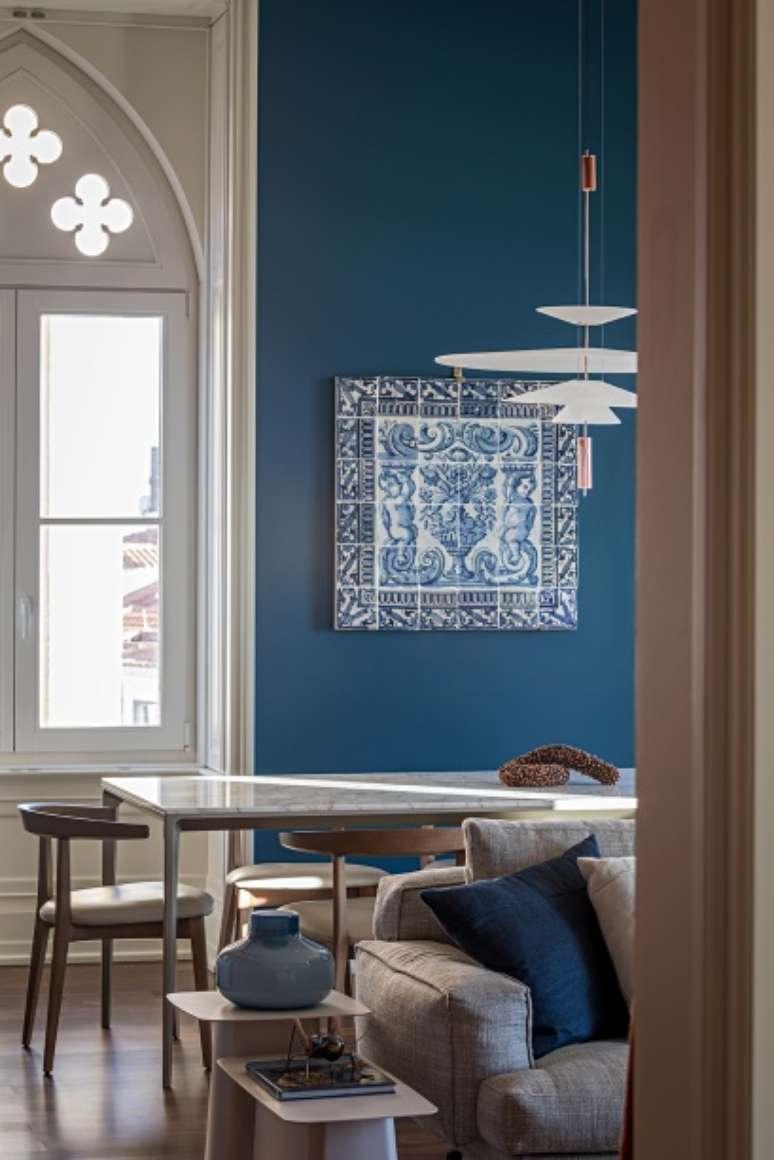 Apê em Portugal ganha reforma com décor contemporâneo e tons azuis