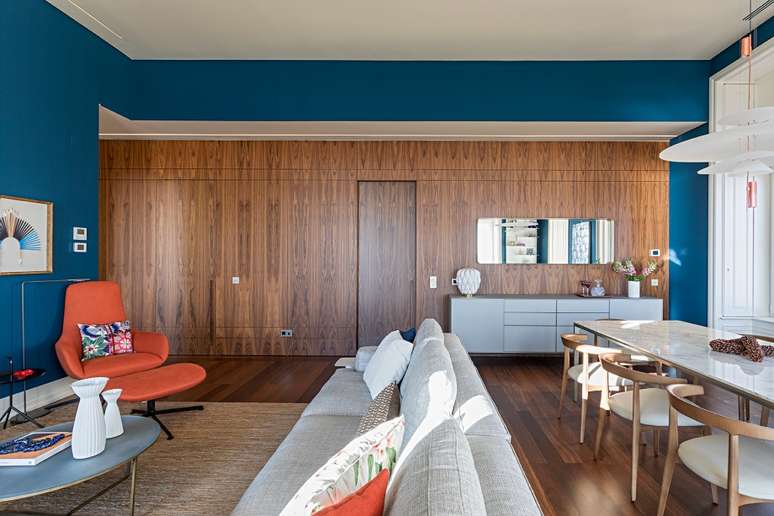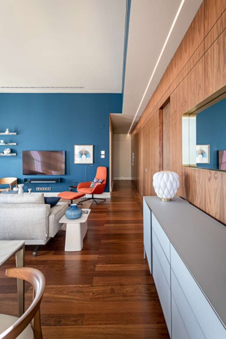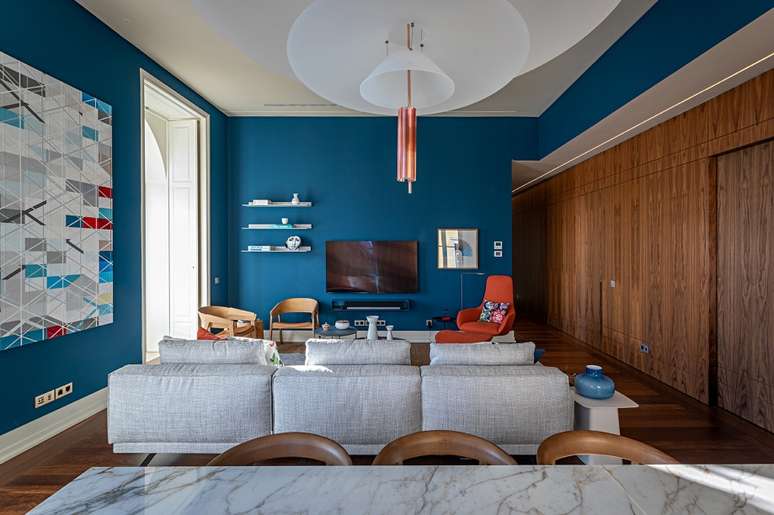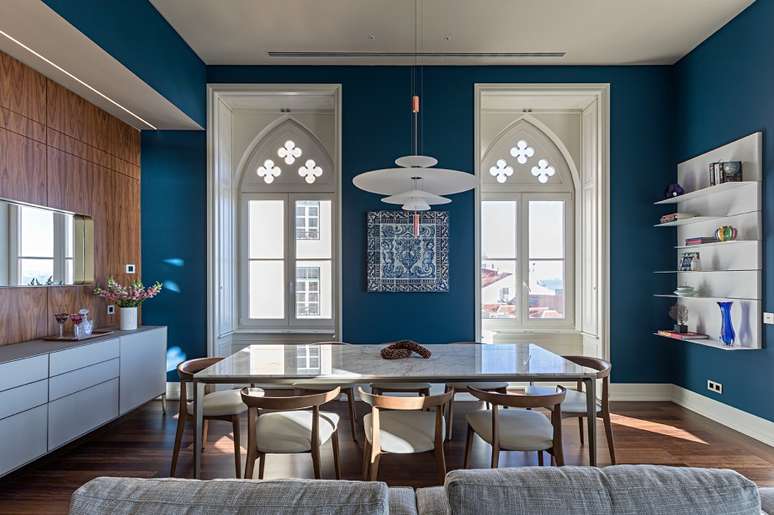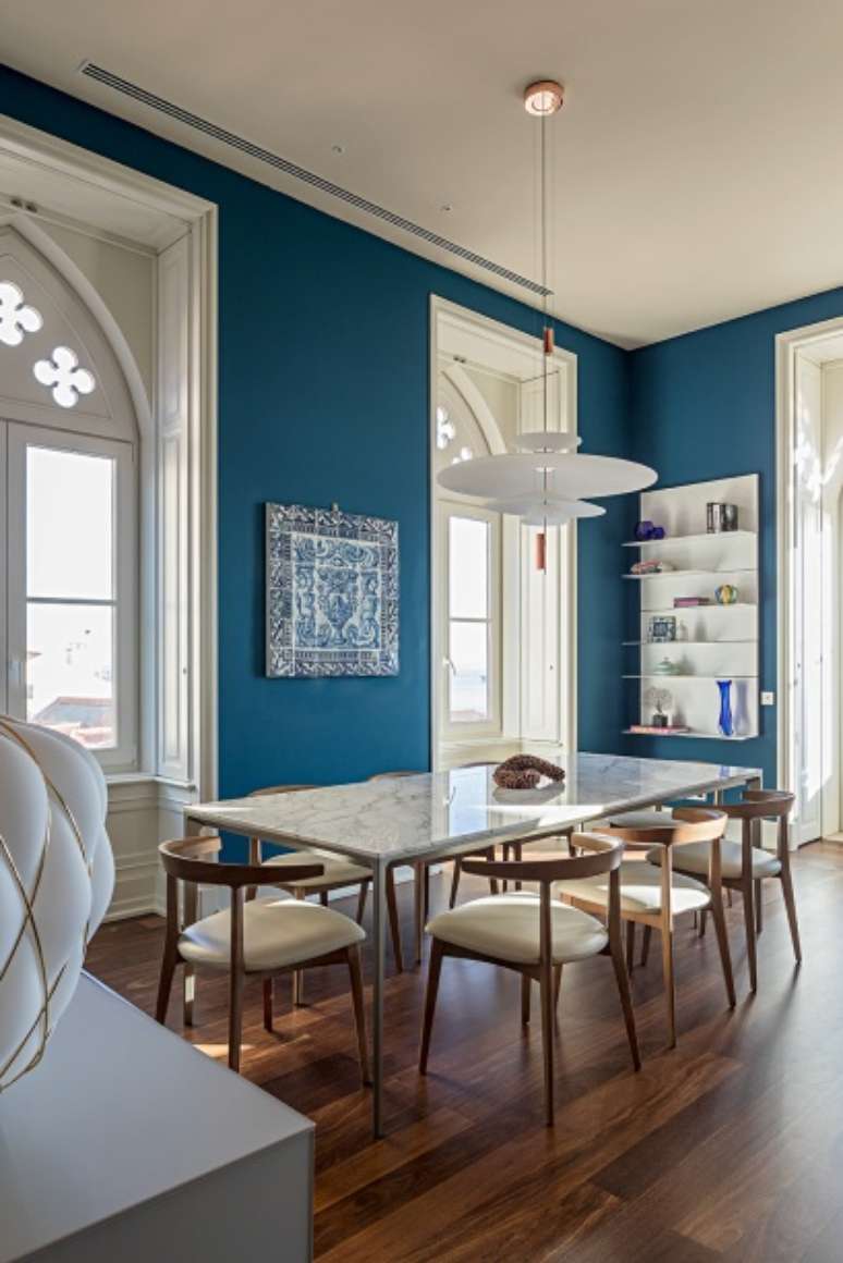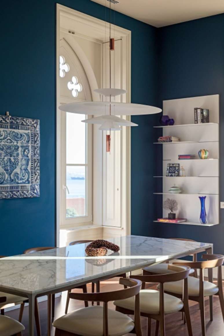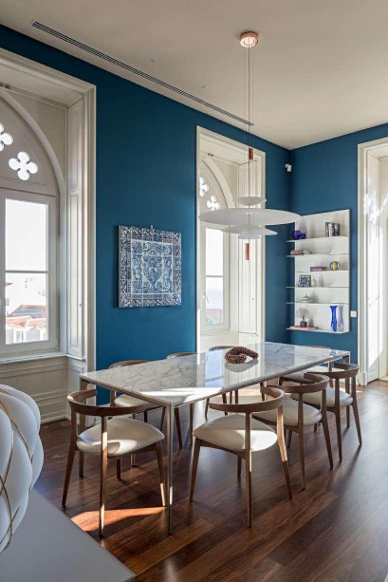 Apê em Portugal ganha reforma com décor contemporâneo e tons azuis