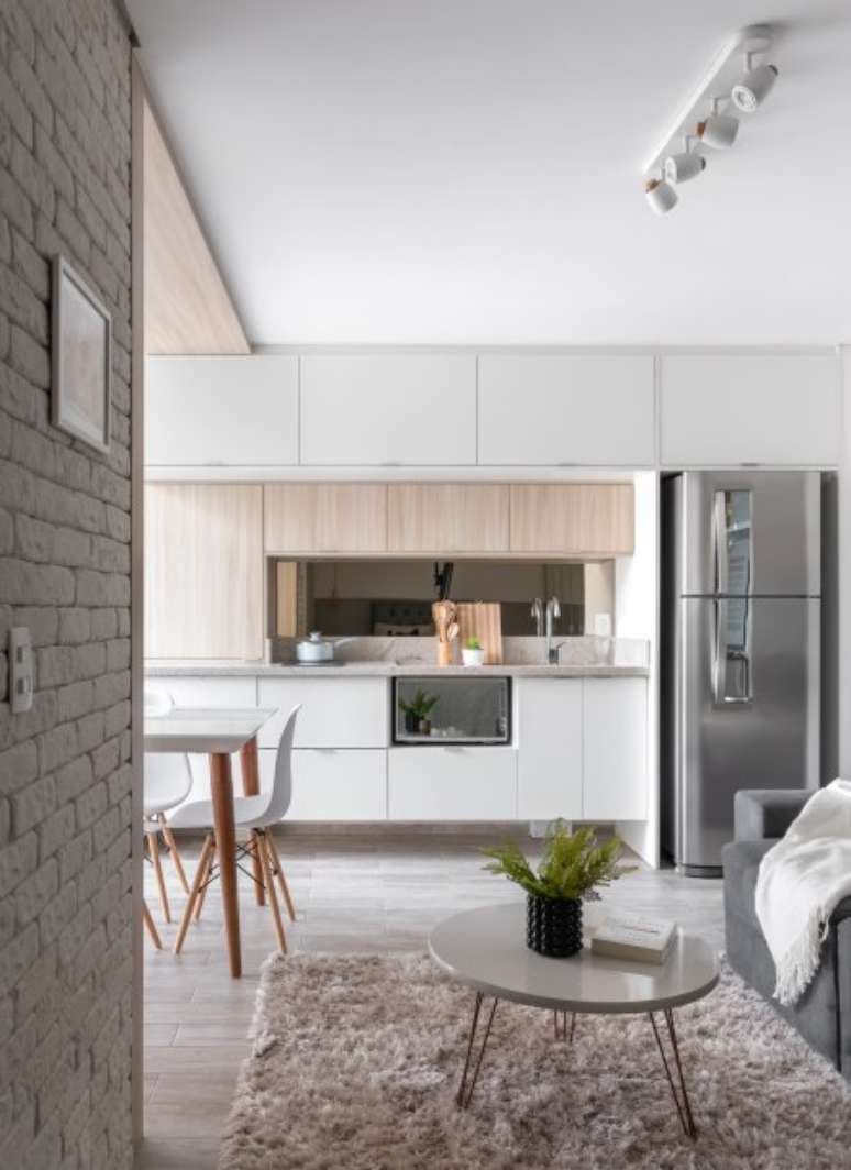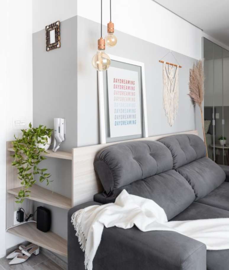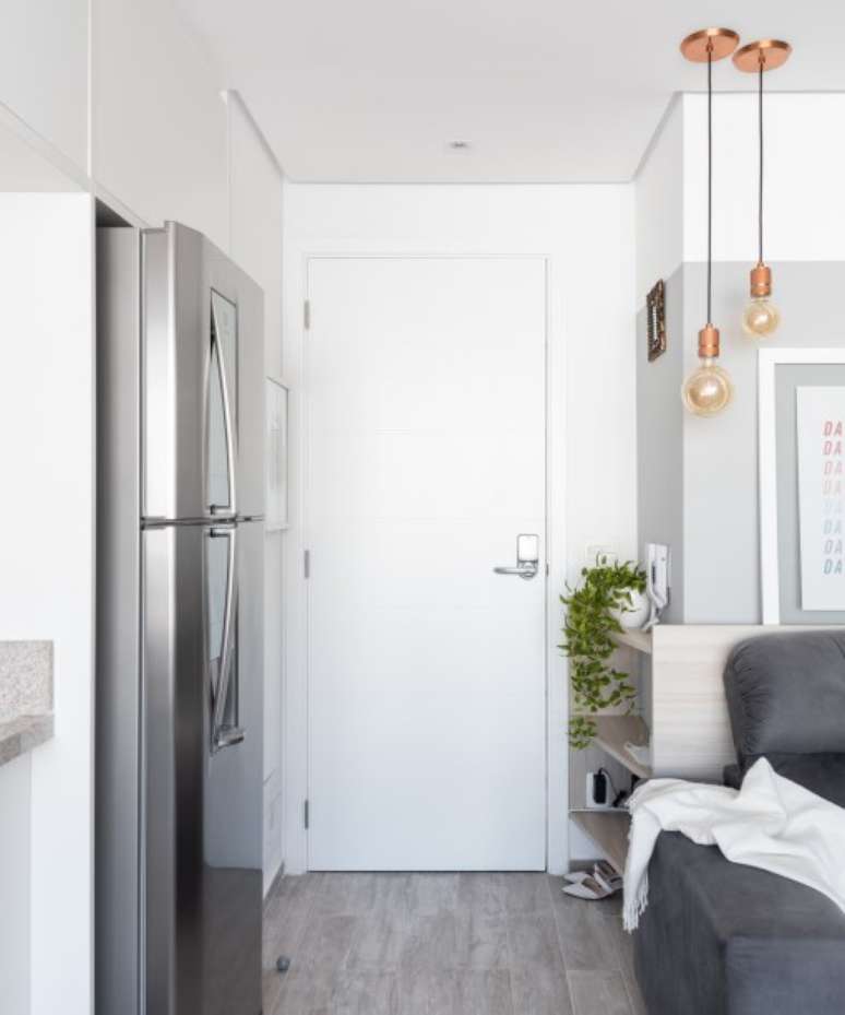 Apê escandinavo de 31 m² ganha amplitude com décor cinza e branco