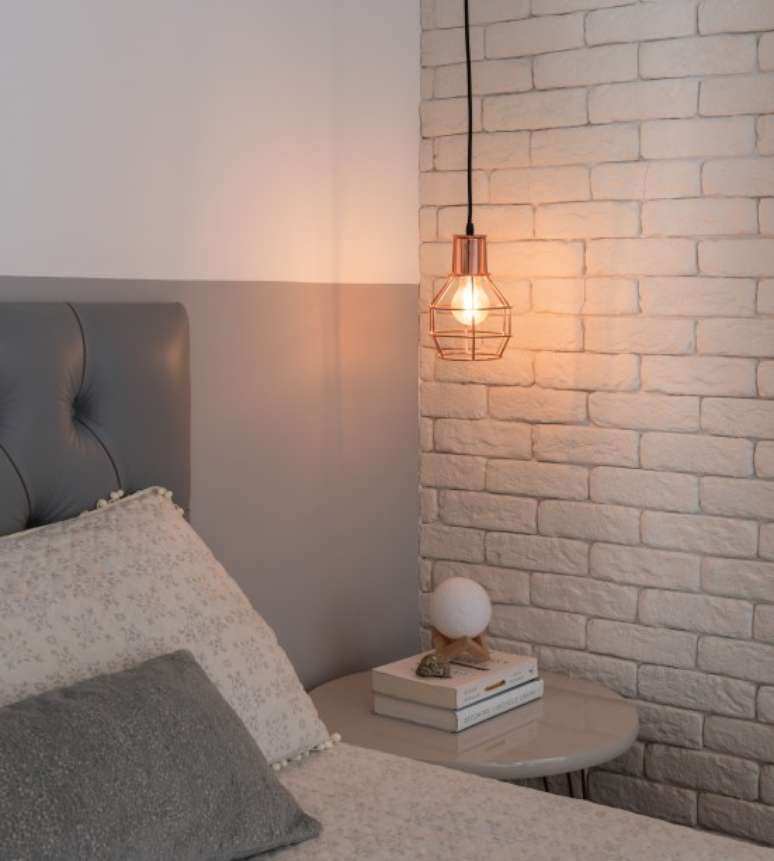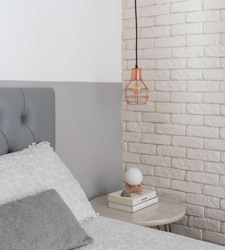 "Nossa proposta foi por um conceito leve e jovial, com uma paleta de cores predominantemente branca e cinza, aquecida pela madeira clara no piso de porcelanato e equilibrada pela marcenaria. Para os toques boho, foi feita uma parede inteira em tijolinho rústico branco complementada com itens de decoração, como o lindo macramê feito pela cliente", conta a profissional