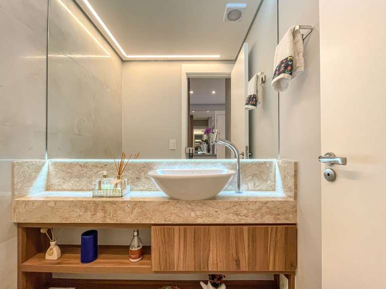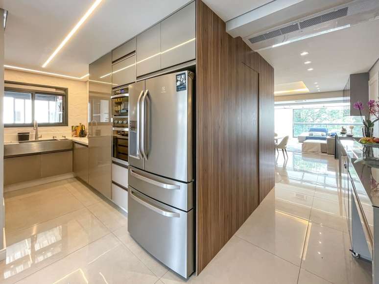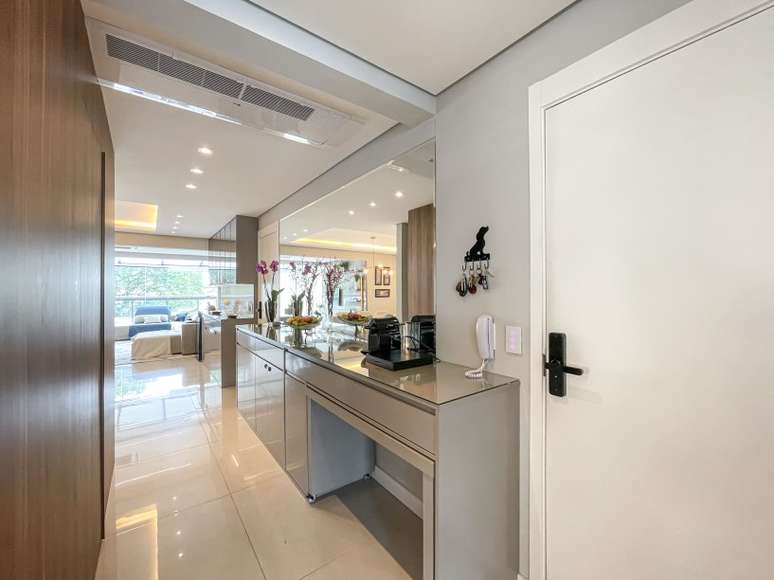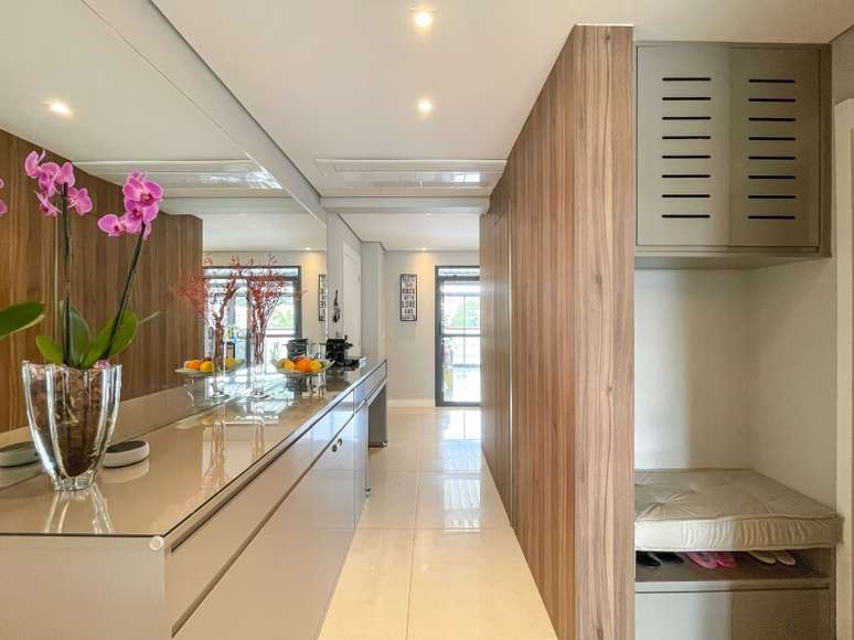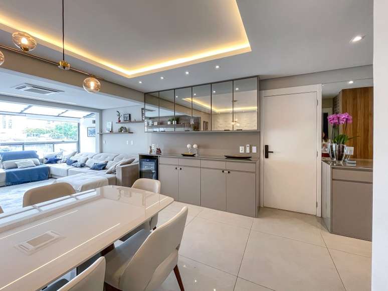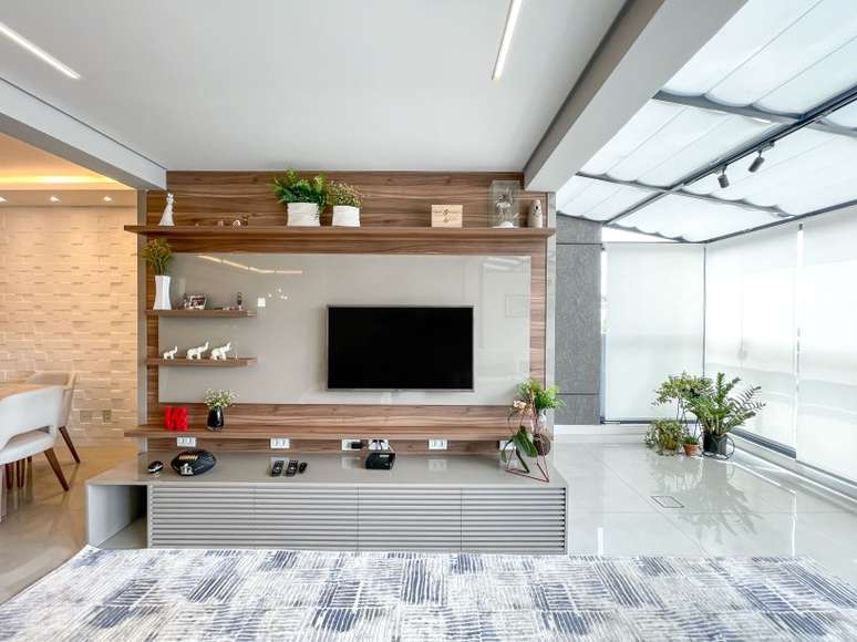 Assinado por Andreia Marchionno, em parceria com Tammy Barboza, o projeto também aumentou a área de estar criando uma cobertura de vidro na varanda
