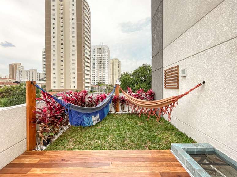 Apê garden de 233 m² ganha jardim, redário e espelho d'água no quintal