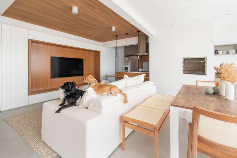 Apê minimalista de 100 m² foi pensado para os quatro cachorros da família