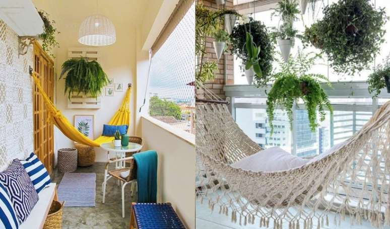 Outra opção para relaxar são as famosas redes. Elas são perfeitas para deitar e ler um livro ou, até mesmo, tirar um cochilo. Muitas vezes, o único espaço para elas são nas varandas e, além de serem super confortáveis, também podem harmonizar com a decoração. Basta escolher um modelo e uma cor que combinem com o resto do ambiente.