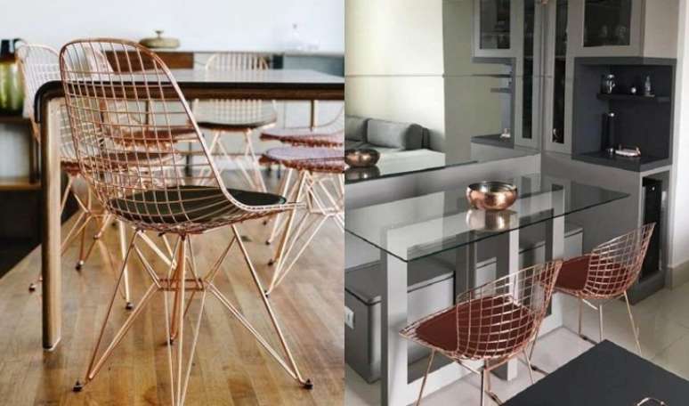 As suas cadeiras também podem ser rose gold! Elas ficam ótimas com mesas de vidro e ajudam a deixar a decoração leve e moderna, além de serem muito elegantes também. Se combinadas com outros objetos no mesmo tom, a harmonia do ambiente fica ainda maior.