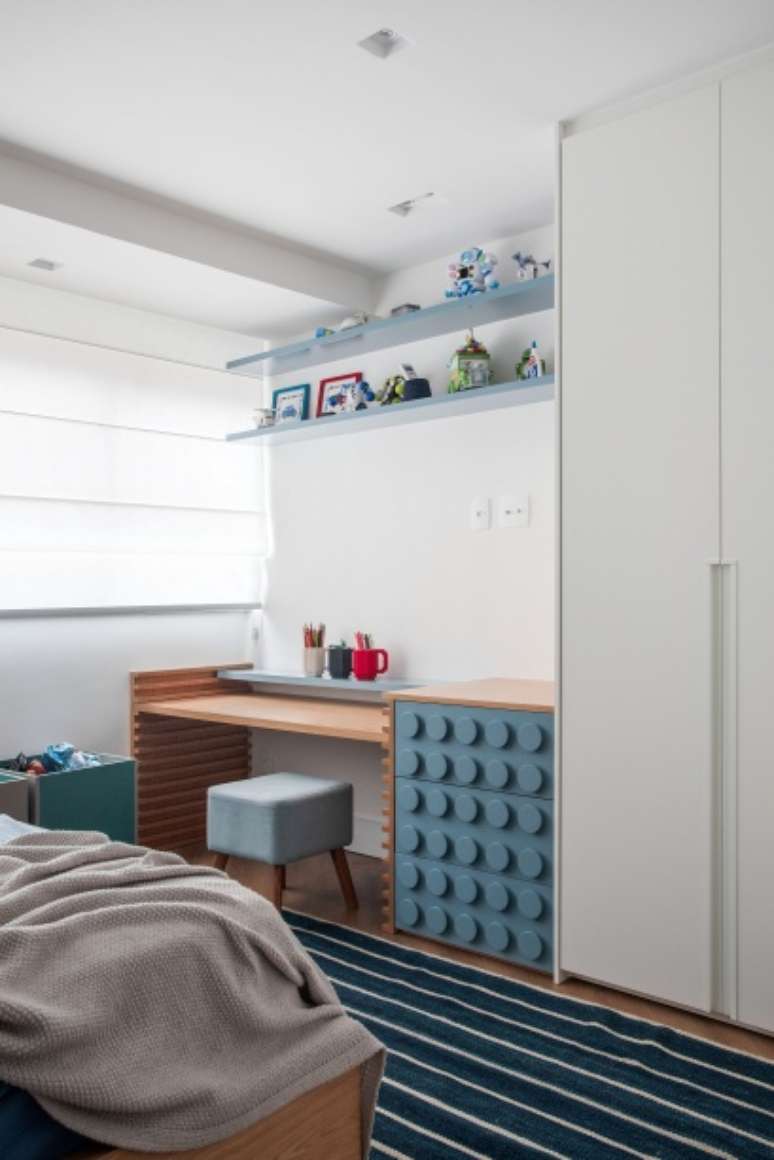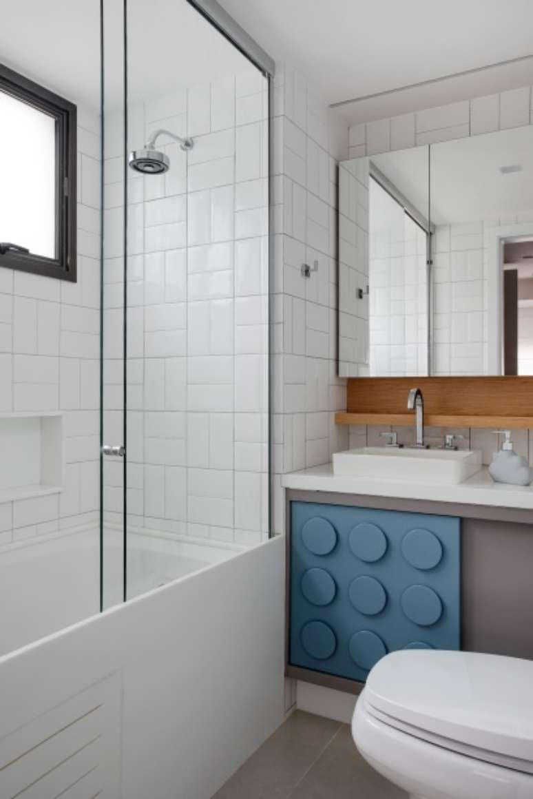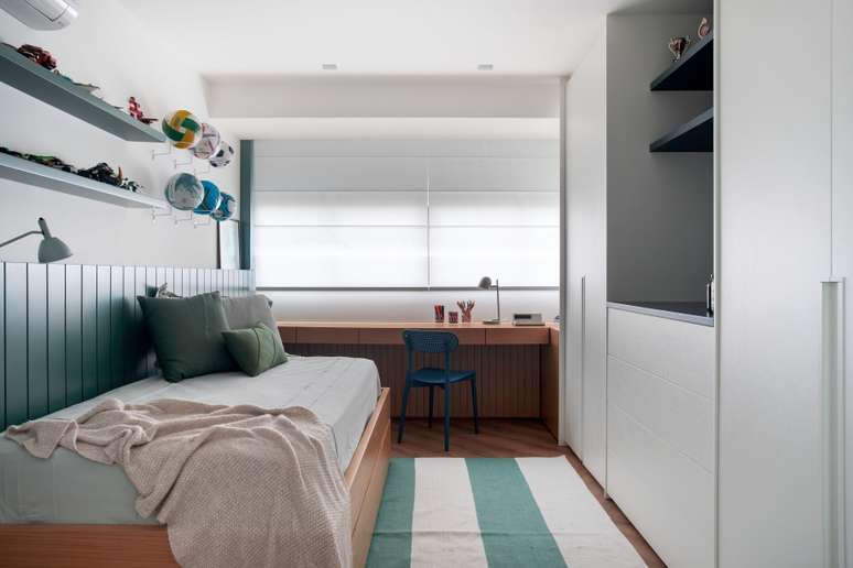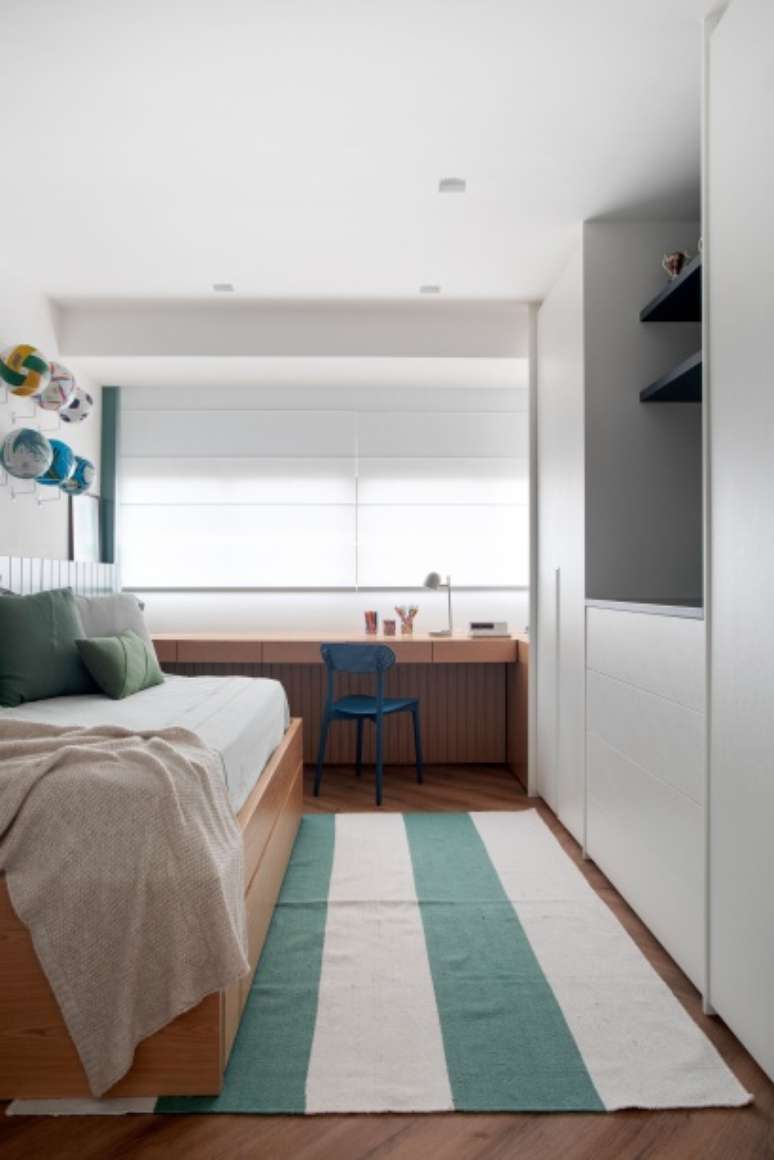 Como os novos proprietários precisavam de três suítes (a deles e uma para cada filho), a arquiteta eliminou o banheiro social para ampliar a suíte master, que ganhou um closet, e redistribuiu os espaços para criar uma suíte para cada filho, com a mesma proposta.