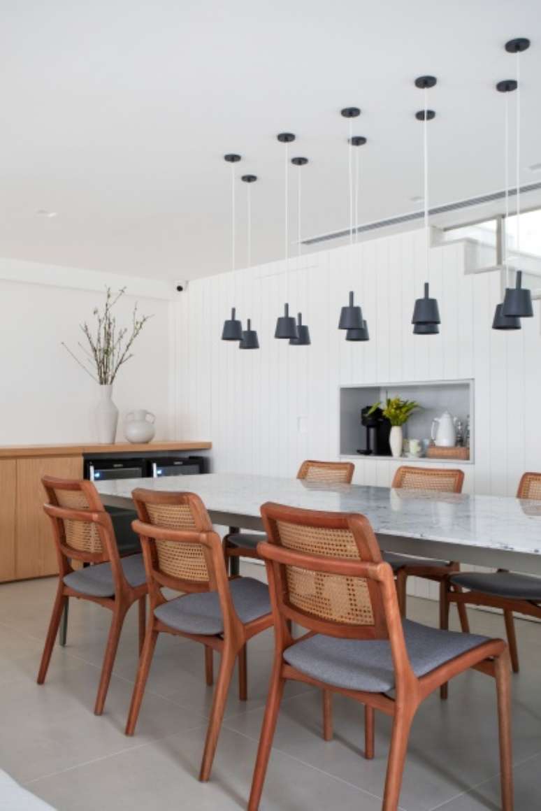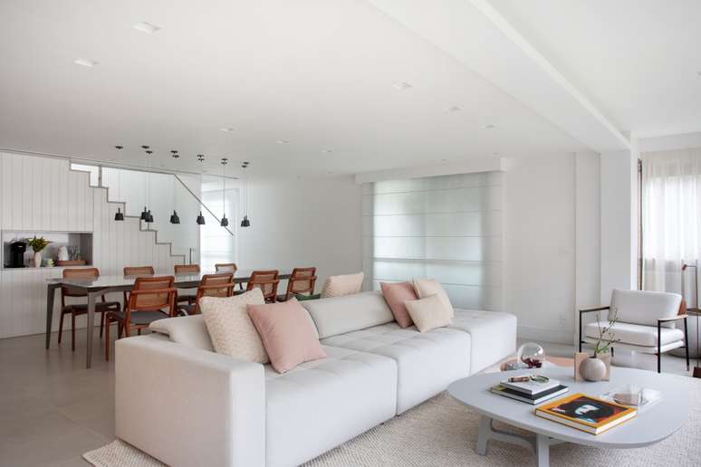 Para os interiores, o Estúdio Mais Alma Arquitetura apostou em uma paleta clara com ambientes integrados