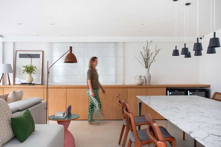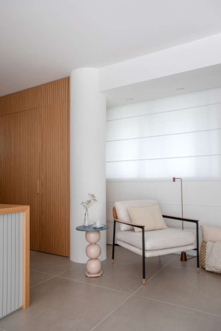 "Com uma abordagem contemporânea e ao mesmo tempo acolhedora, trabalhamos uma estética confortável e atemporal, combinando materiais quentes com linhas limpas, paletas suaves e detalhes finos", explica a arquiteta.
