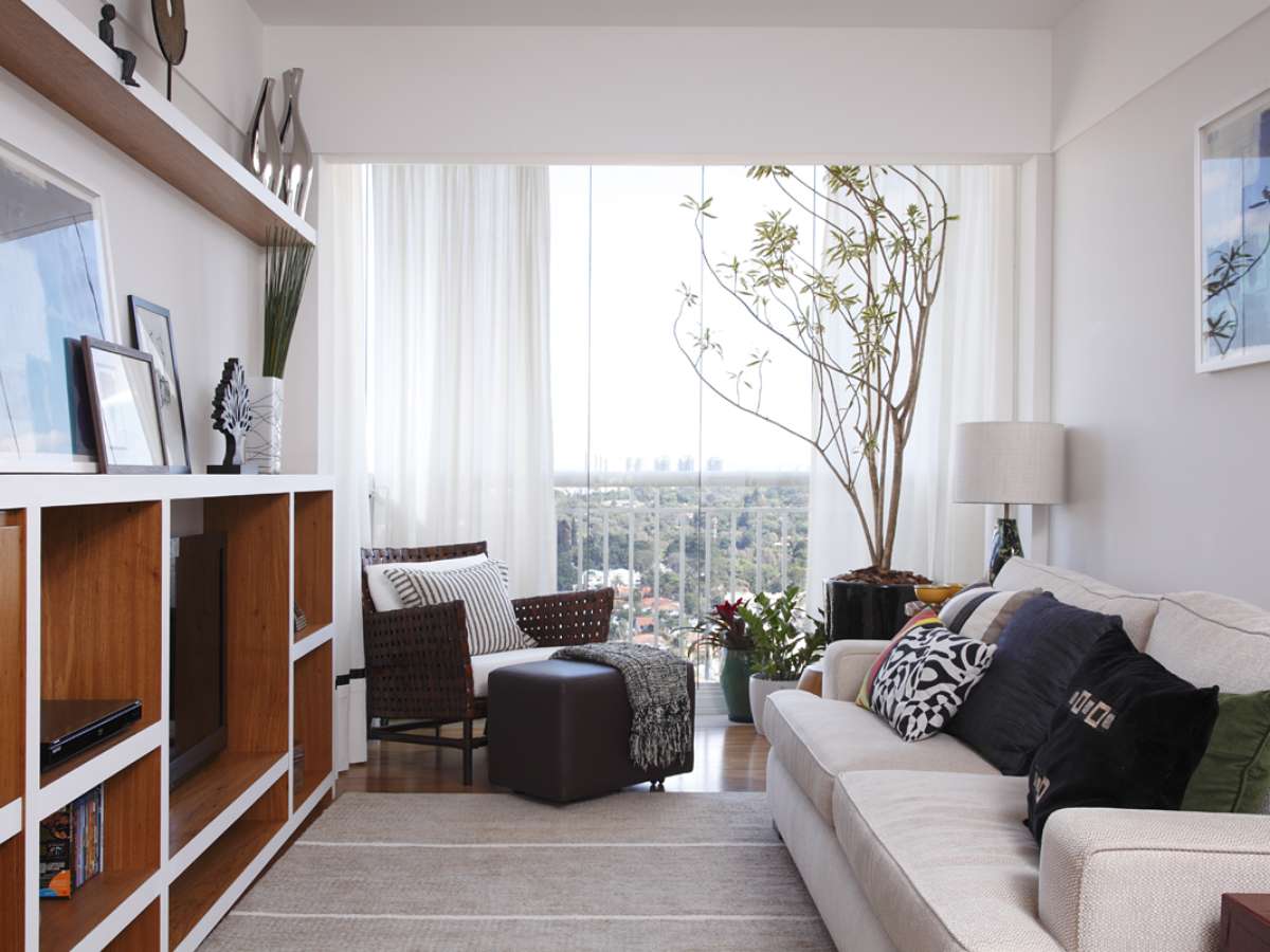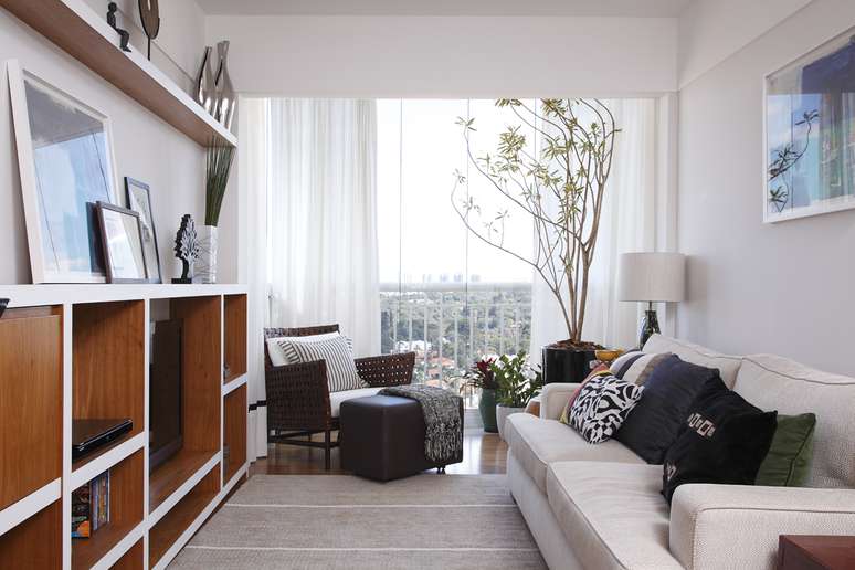 Arquiteta une sala com varanda e amplia apartamento de 60m²