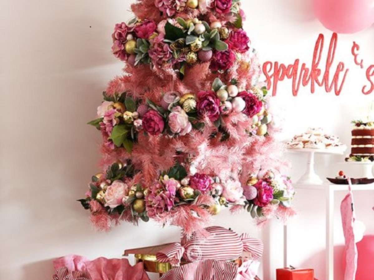 1. Árvore de natal rosa com detalhes em flores – Foto Oh its Perfect
