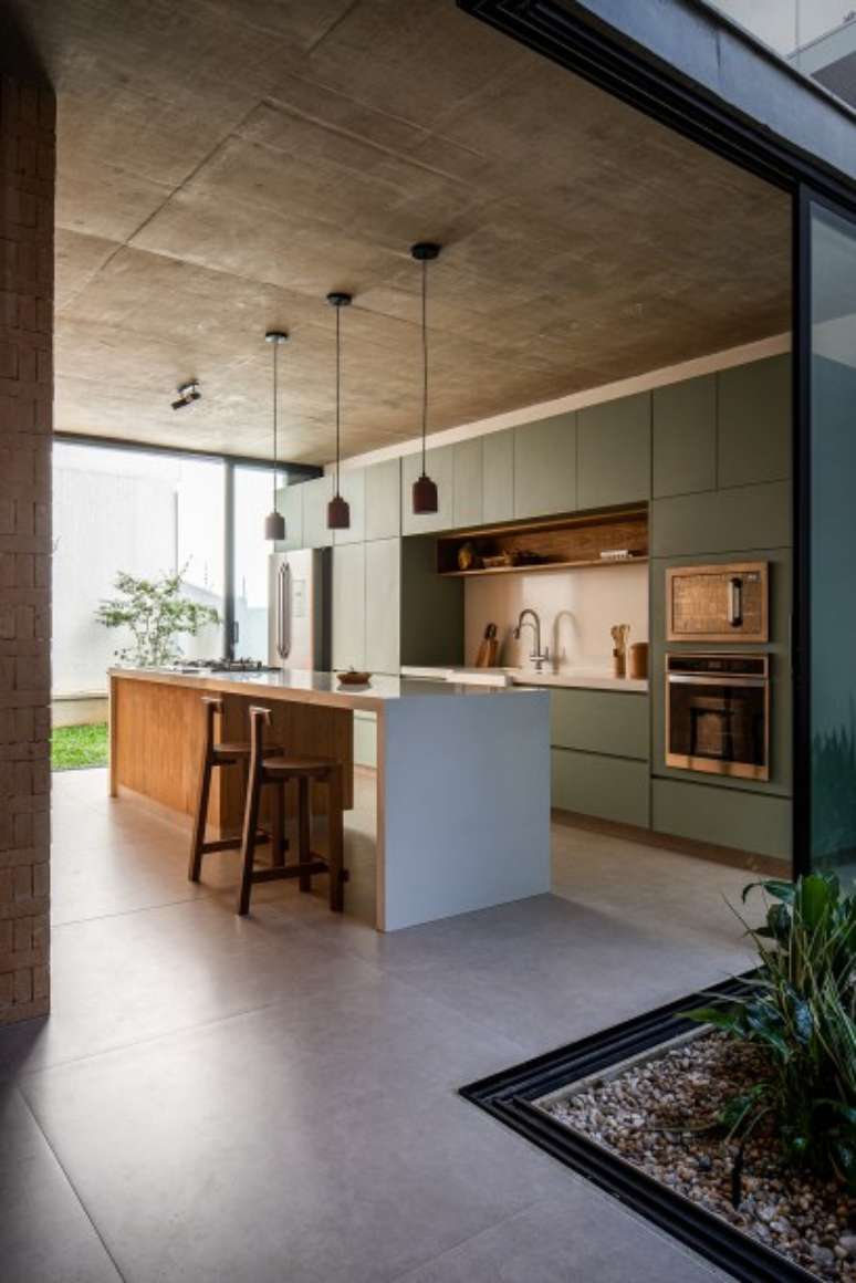 Assinada pelo escritório Eixo Z Arquitetos, a residência tira partido do terreno estreito e longílineo para criar uma morada contemporânea