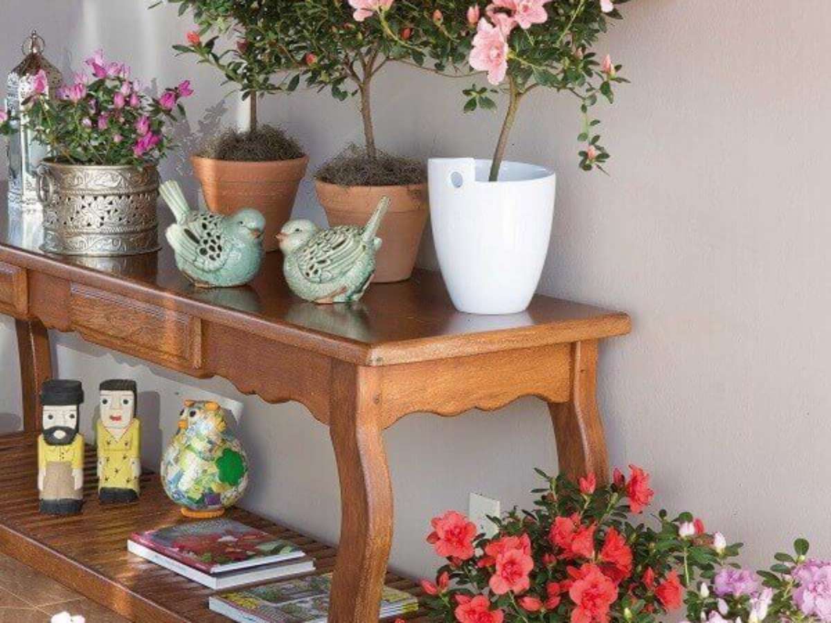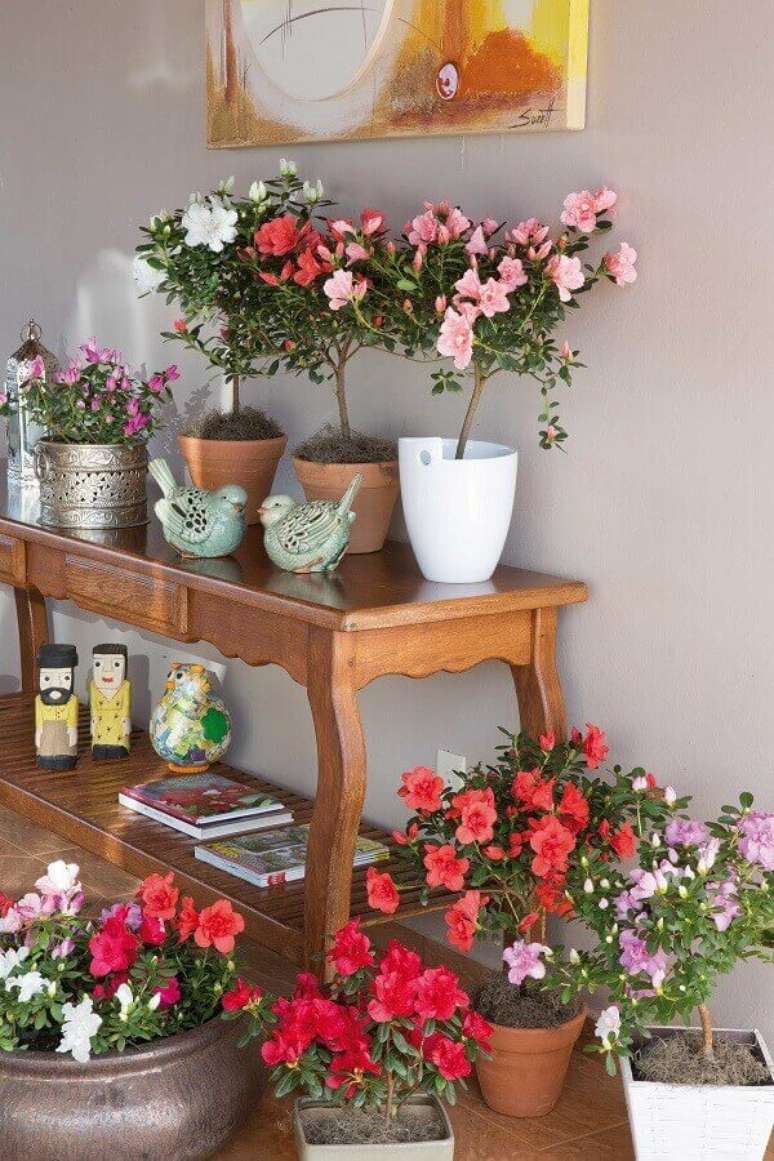 1- A coleção da flor azaleia decora a sala sobre o aparador de madeira. Fonte: Revista Natureza