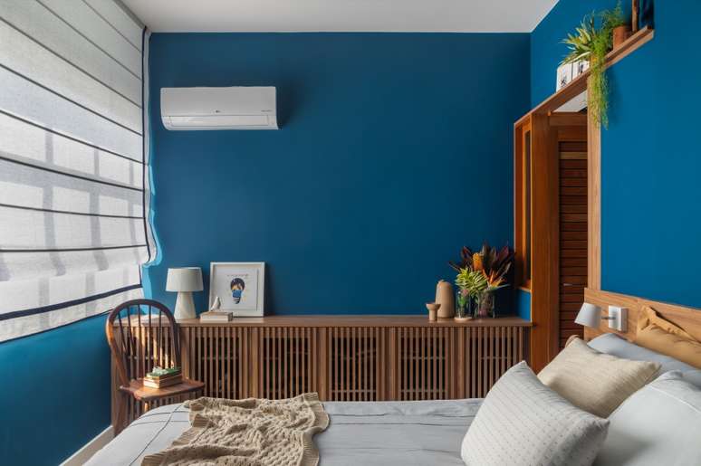 Já a nova área de serviço ficou escondida atrás da cozinha, fora do campo de visão de quem está na sala. Na área íntima, foi criada uma suíte que não existia, com banheiro e o closet dispostos para não incomodar quem estivesse dormindo, já que os clientes tem rotinas de trabalho diferentes.