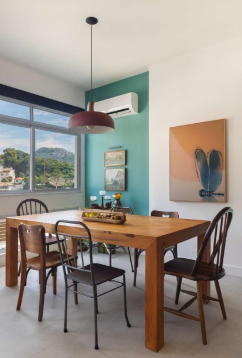Segundo a arquiteta, a vista livre das montanhas, a farta iluminação natural e a excelente ventilação do imóvel foram as suas principais inspirações na hora de desenvolver o projeto, bem como o alto astral do casal, que adora receber os amigos em casa e aprecia uma decoração mais despojada, com ambientes coloridos, ecléticos e repletos de elementos que reforçam a personalidade dos dois, sem muita preocupação com modismos e tendências.