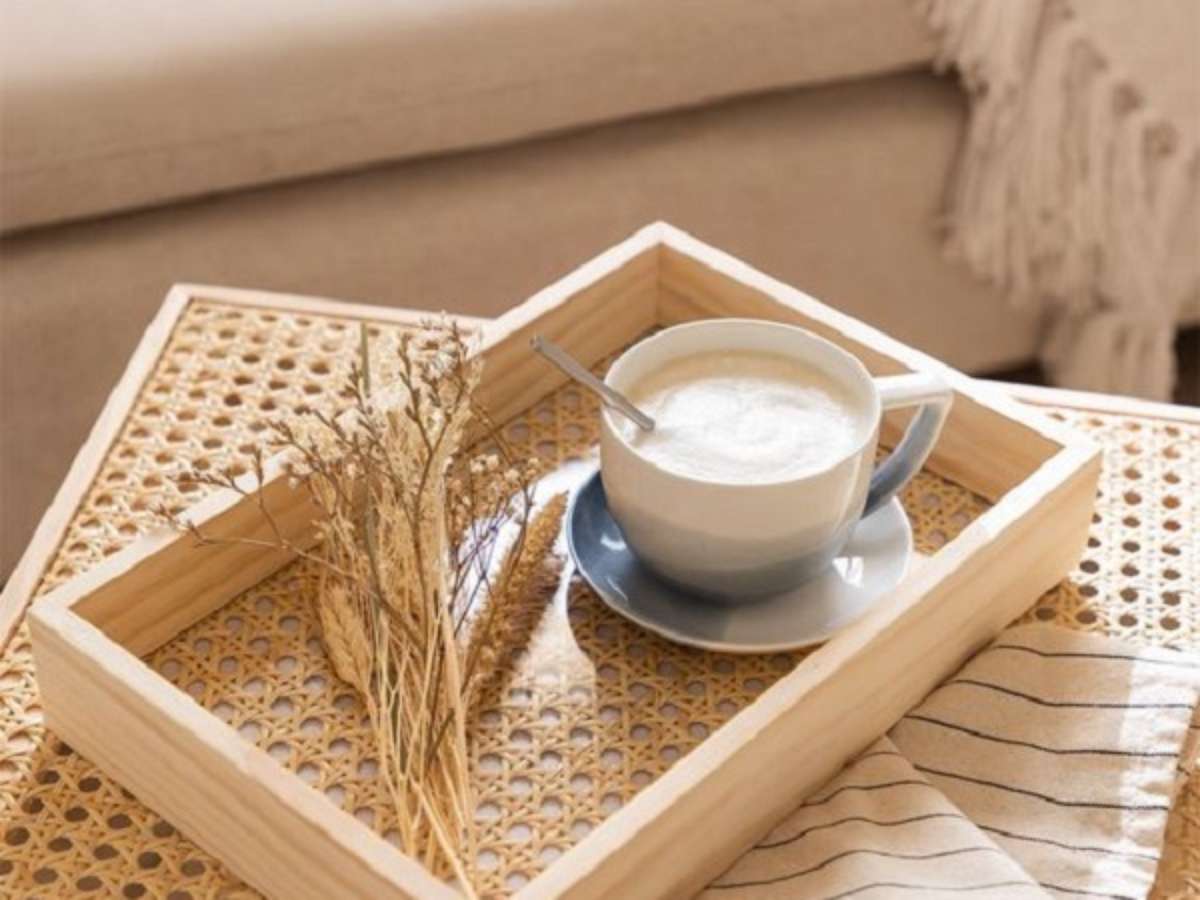 O que mais indicamos é usar a bandeja decorativa para café na bancada da cozinha, assim você deixa o espaço separado para quem quiser degustar um café delicioso a qualquer momento do dia!