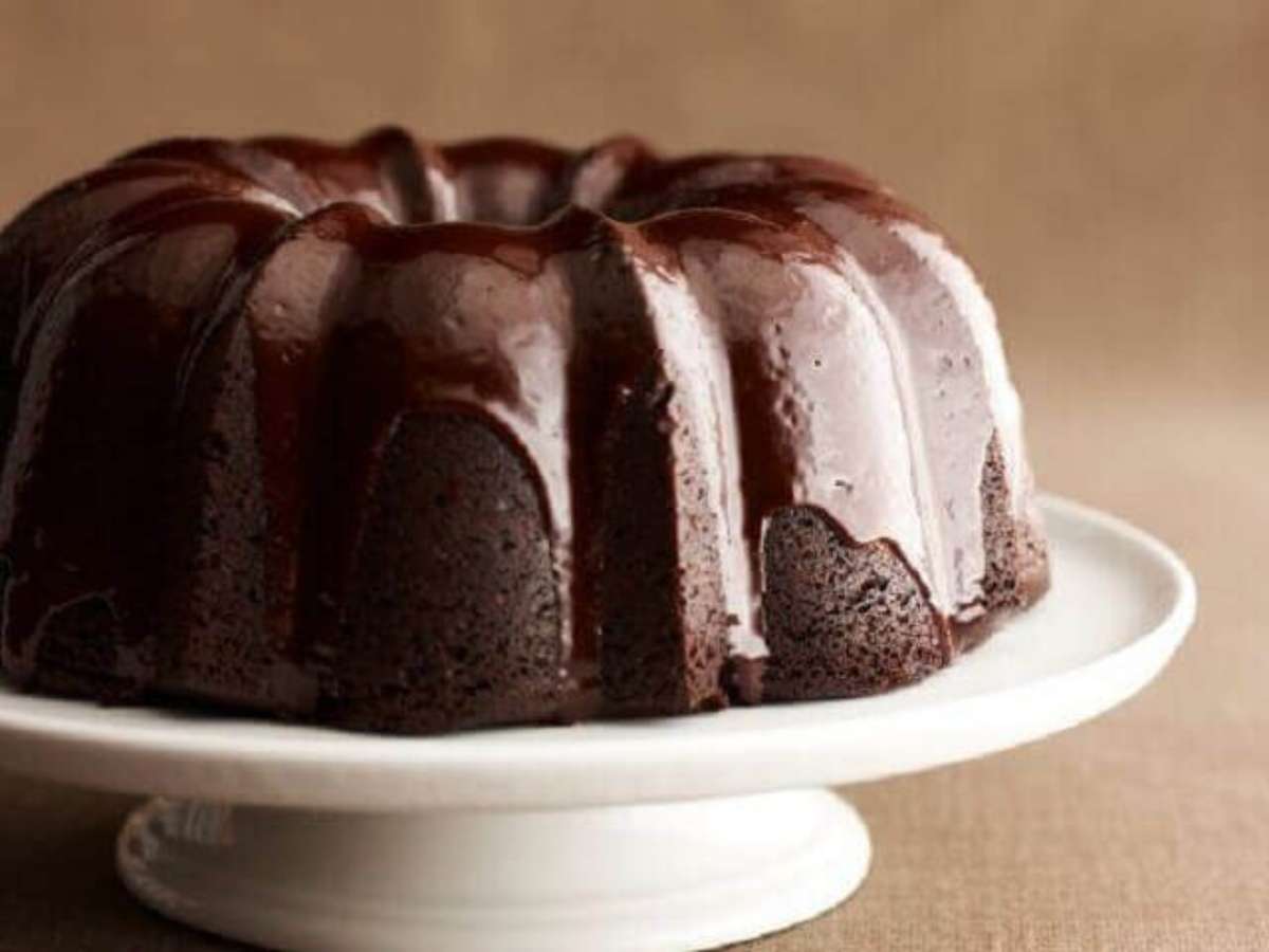 - Retire do fogo, espere uns 5 minutos e cubra seu bolo de chocolate.