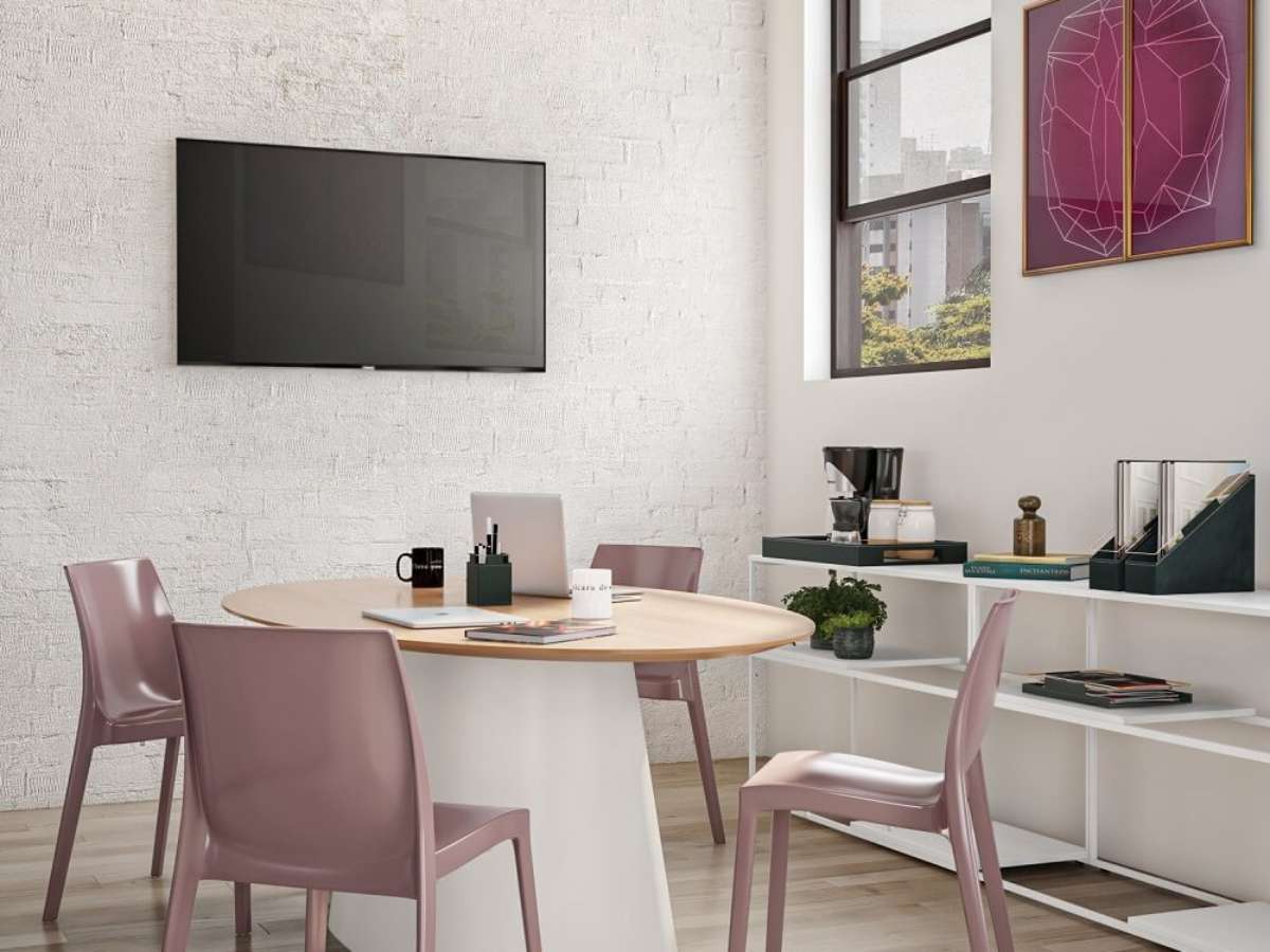 Para começar nossa lista com tudo, por que não levar um toque de cor para seu ambiente de trabalho? Cadeiras de escritório modernas e coloridas podem deixar seu espaço com estilo contemporâneo, alegre e convidativo - sem que fique carregado. Para isso, basta optar por tons pastel e um conjunto de cadeiras do mesmo modelo. Você pode fazer combinações com itens de decoração do espaço, criando uma identidade para determinada sala ou escritório.