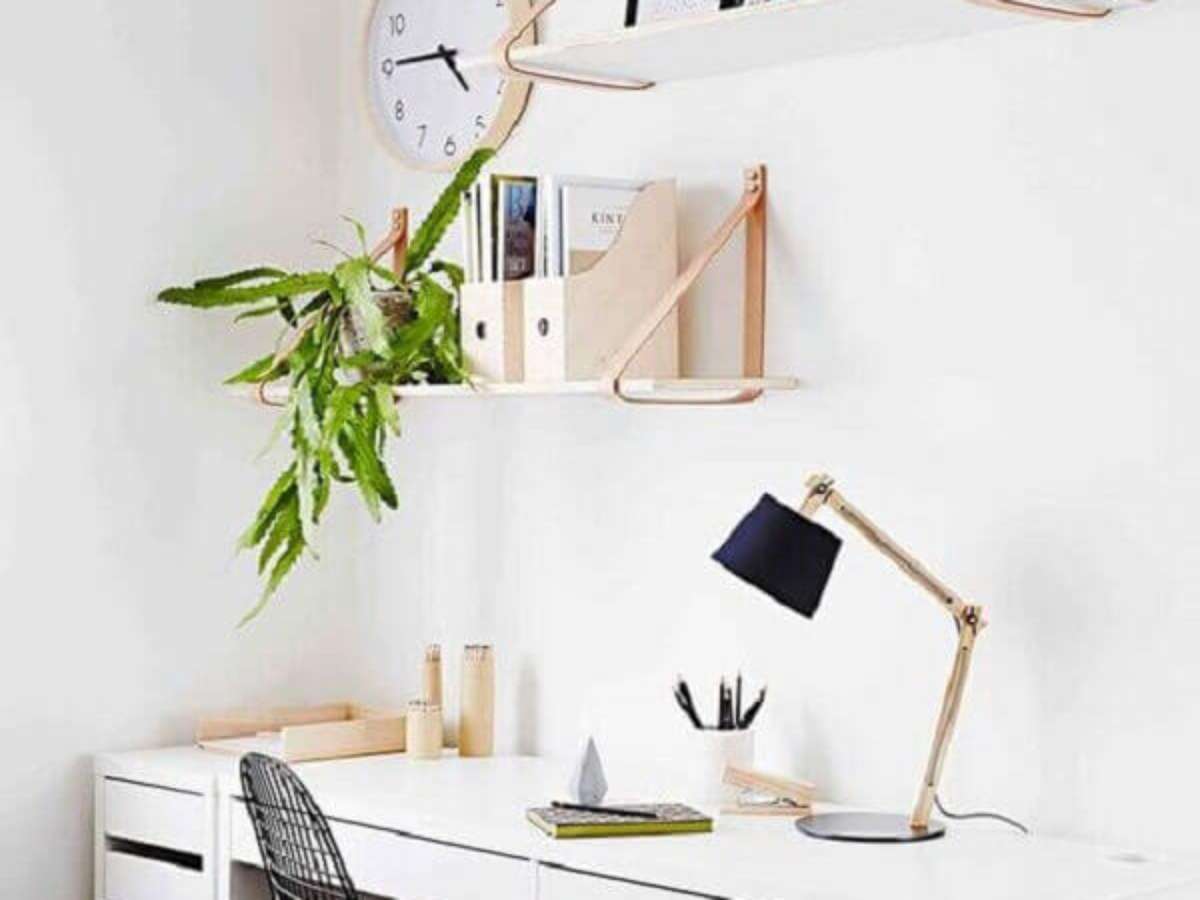 10. Bancada suspensa para decoração de cantinho de estudo simples – Foto: AD Magazine