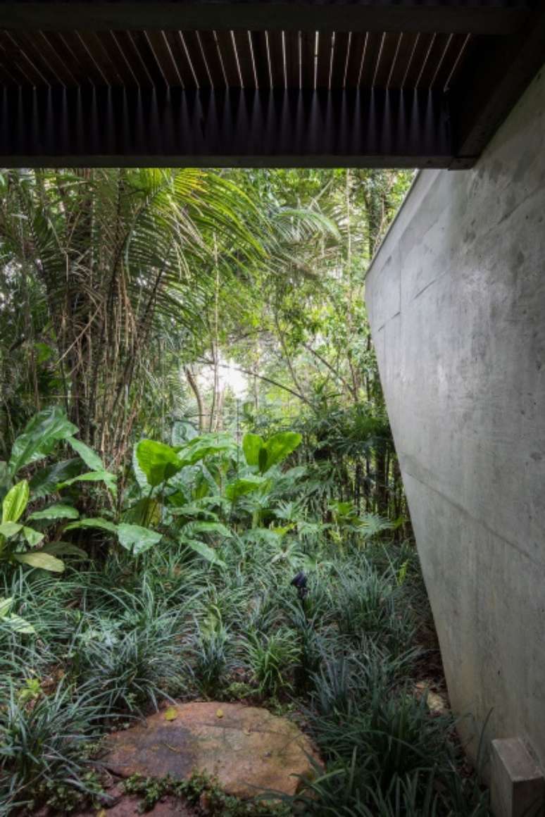 O paisagismo, realizado por Rodrigo Oliveira, privilegiou a manutenção e a preservação da mata já existente ao redor do imóvel, ao utilizar exclusivamente espécies nativas do local, o que aumentou a sensação que as plantas já pertenciam à casa.